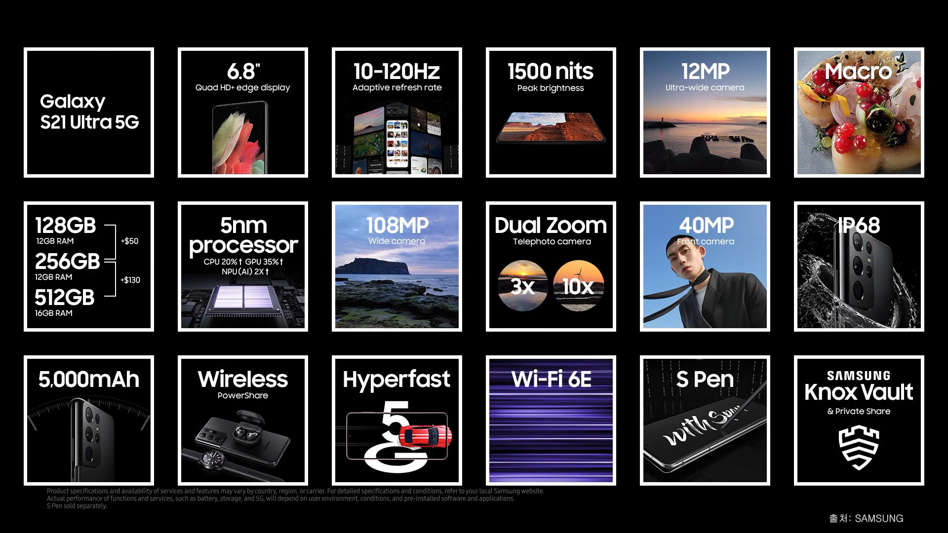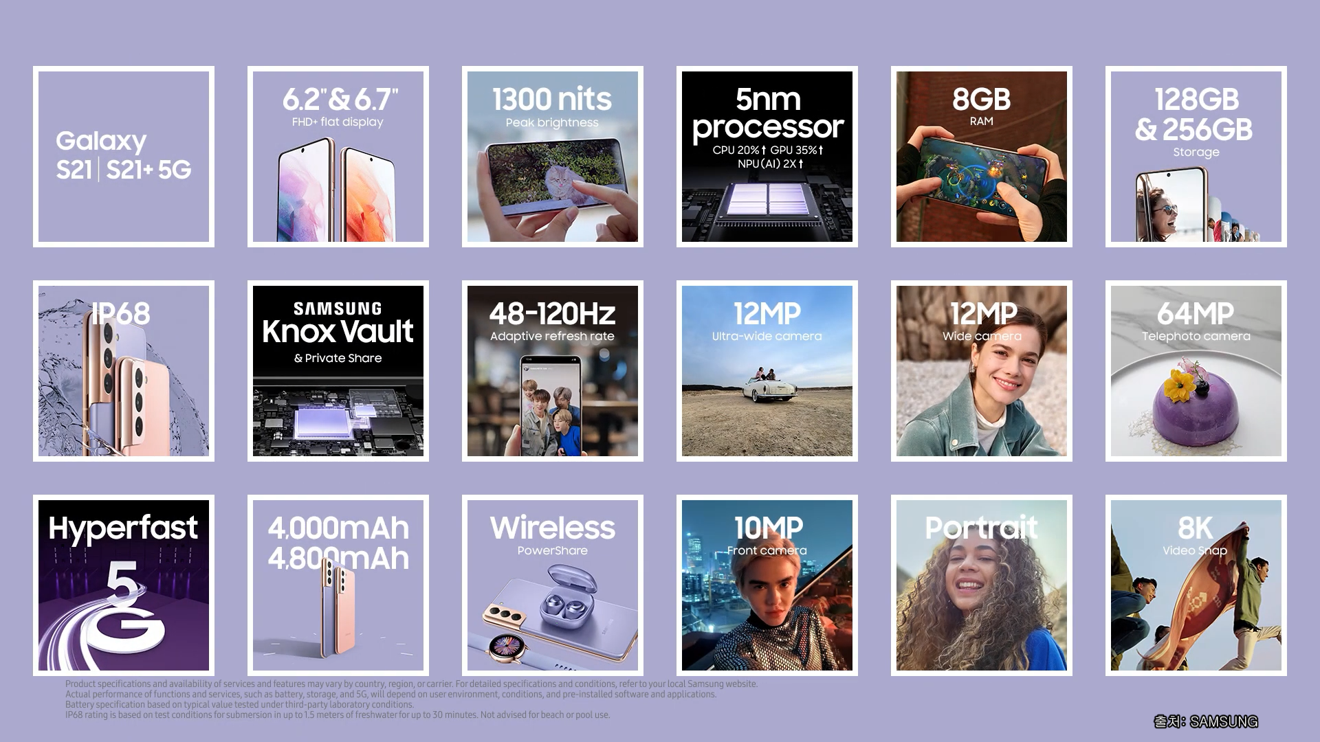 세 종류 모두 최신 스마트폰 칩셋인 삼성전자의 엑시노트 2100 또는 퀄컴의 스냅드래곤 888이 내장되어 있습니다.