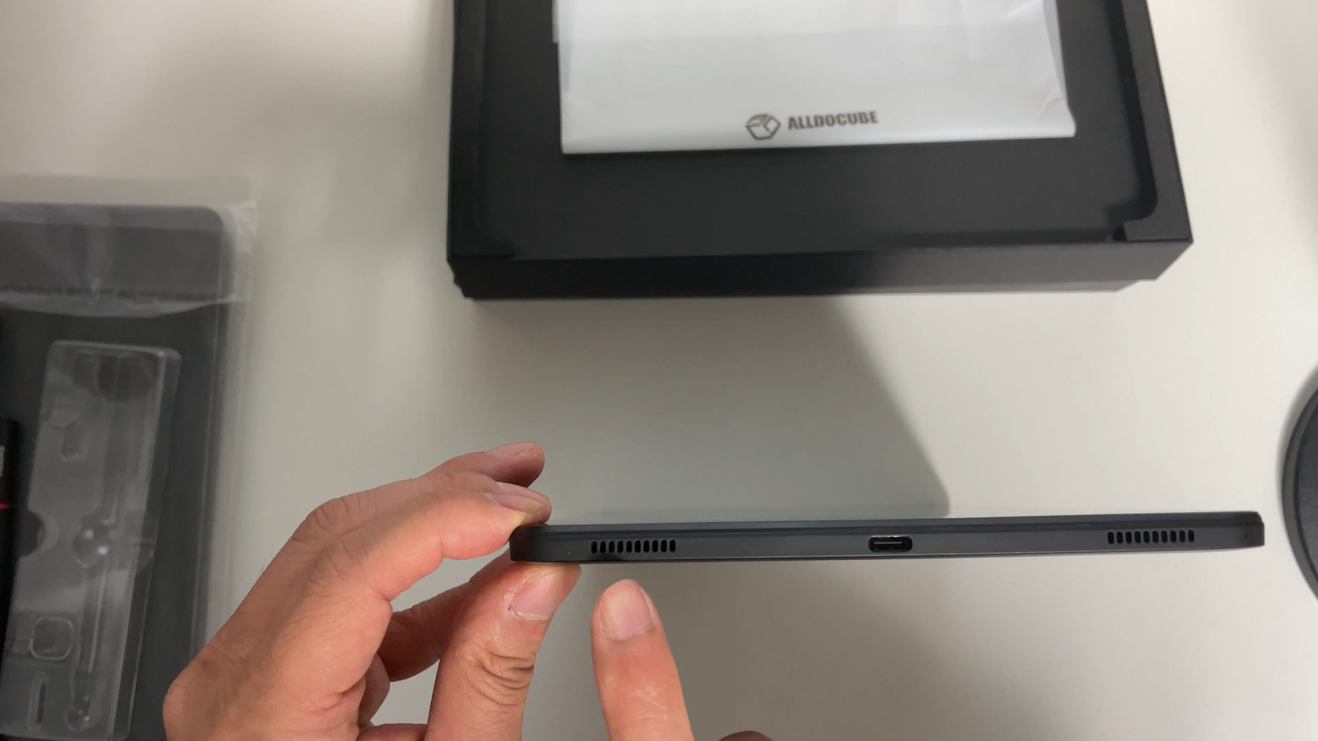우측에는 전원 키와 볼륨 키가 있습니다 위쪽은 마이크 하고 이어폰 잭이 있습니다 뒷면은 iPlay 20하고 동일한 디자인이에요