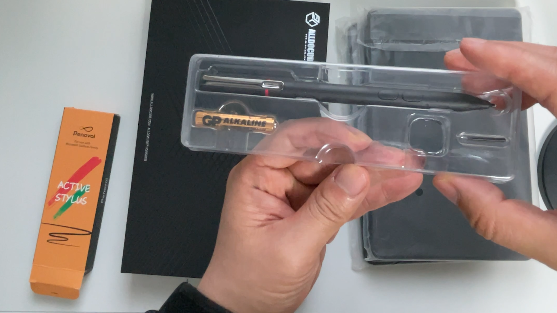 전용 펜슬 입니다 이렇게 배터리가 같이 들어 있습니다 여유 펜촉이 있고요 그리고 펜촉을 제거하는 도구가 있습니다 배터리를 돌려서 끼워 주면 돼요