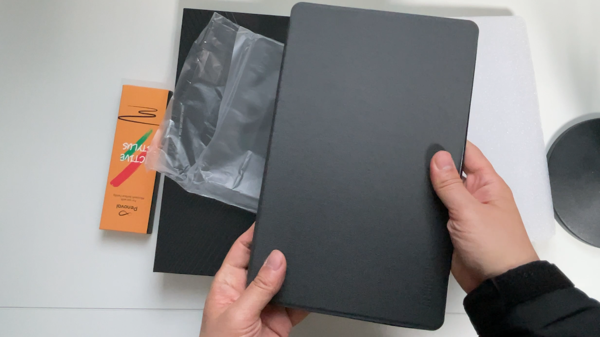 본체를 이렇게 열면은 확실히 무게가 묵직하네요 무게가 무거워요 보호 필름 위의 보호지를 제거해 줄께요