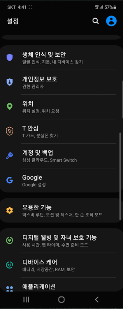 그다음에 모바일 데이터 사용량을 체크 해요 와이파이를 사용하지 못할 때에도 사용할 수 있게 하는 기능입니다.