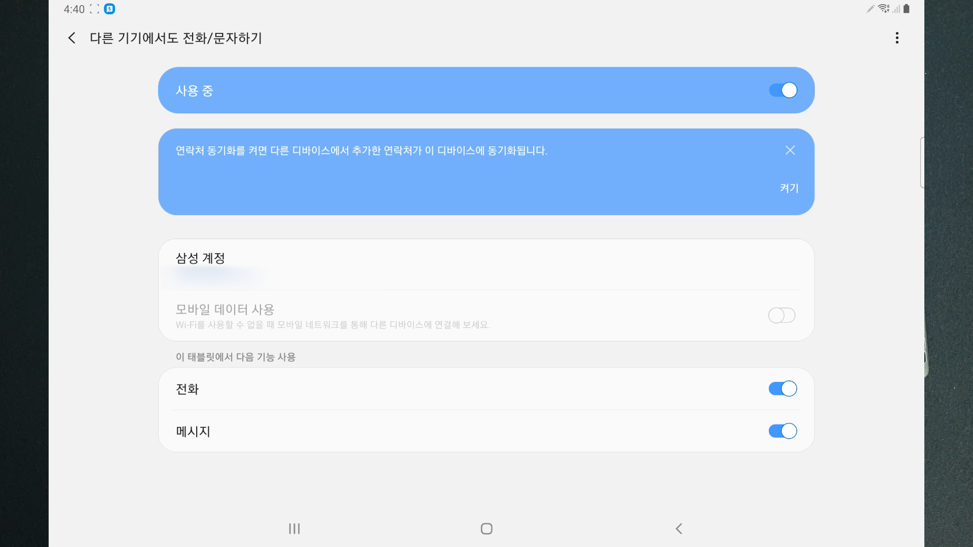 그러면 이어서 핸드폰과 태블릿을 동시에 저는 전화를 받을 거예요 이거를 CMC 기능이라고 하더라고요 한번 해 볼게요