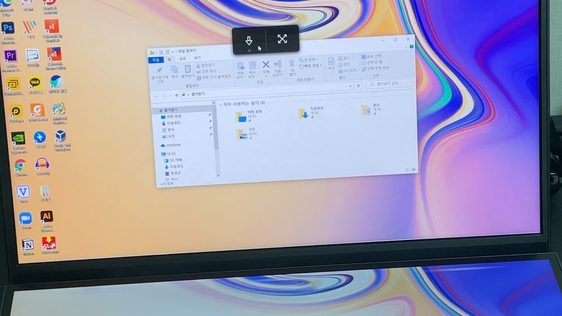 많은 영상들이 이 제품을 영상 편집 전용이라고 언급하잖아요. 가장 활용도가 높은 건 프리미어를 사용할 때 인데요 프리미어의 타임라인을 보조 모니터에 두고 사용하라고 광고하잖아요. 사용하다 보면 좌측 스크린패드 옵션창 팝업이 떠요 이게 굉장히 불편했어요
