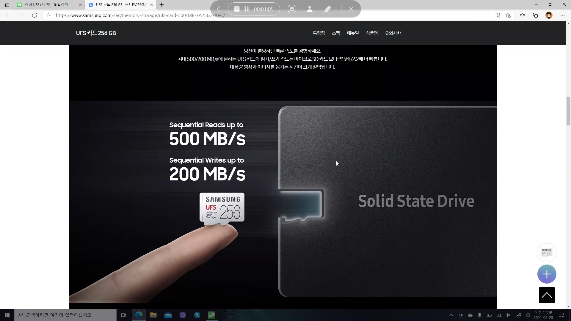반면에 갤럭시북 Flex2 5G는 UFS & microSD Combo를 지원하고 있어요 굉장히 빠른 속도의 제품이라는 것을 알 수가 있지요 microSD 카드 속도에도 굉장히 큰 차이가 있습니다