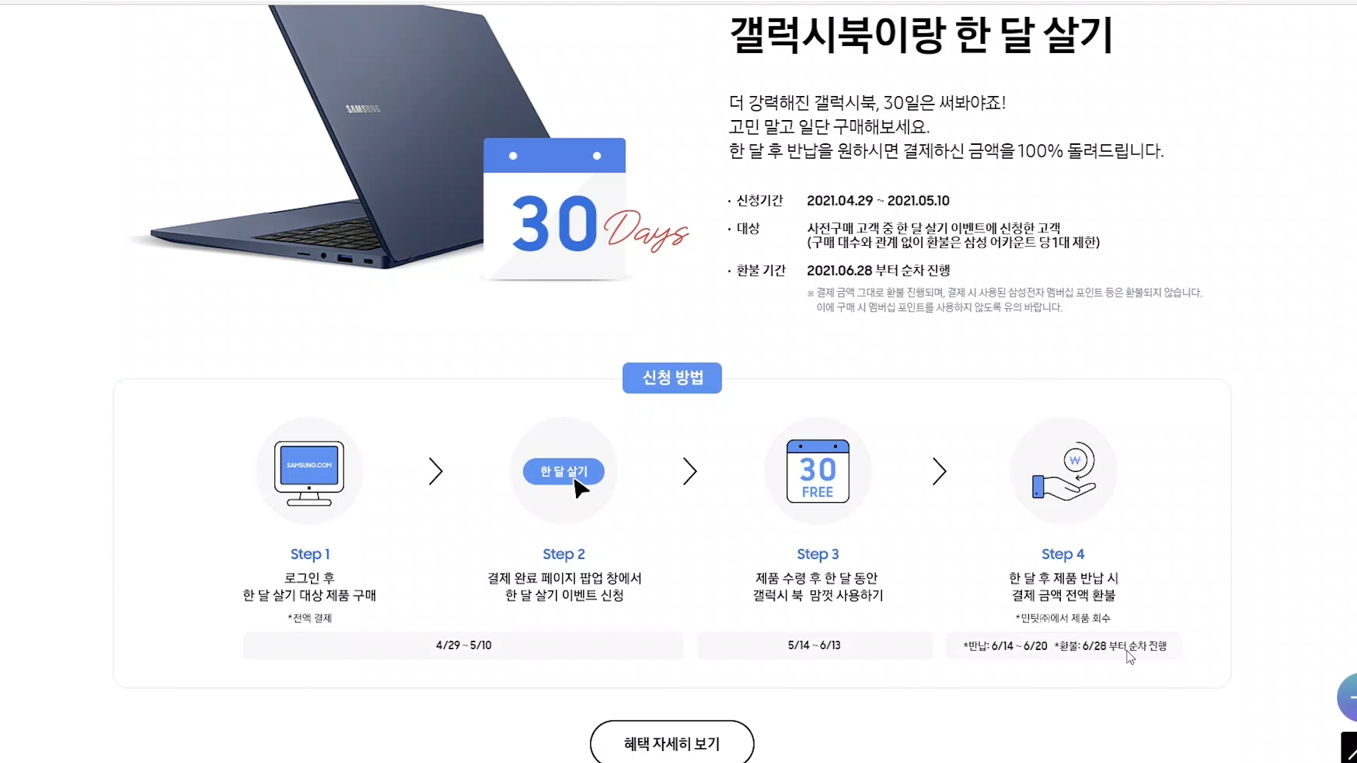 일전에 소개해 드렸던 갤럭시북 한 달 살기 체험기간이 벌써 종료되었습니다