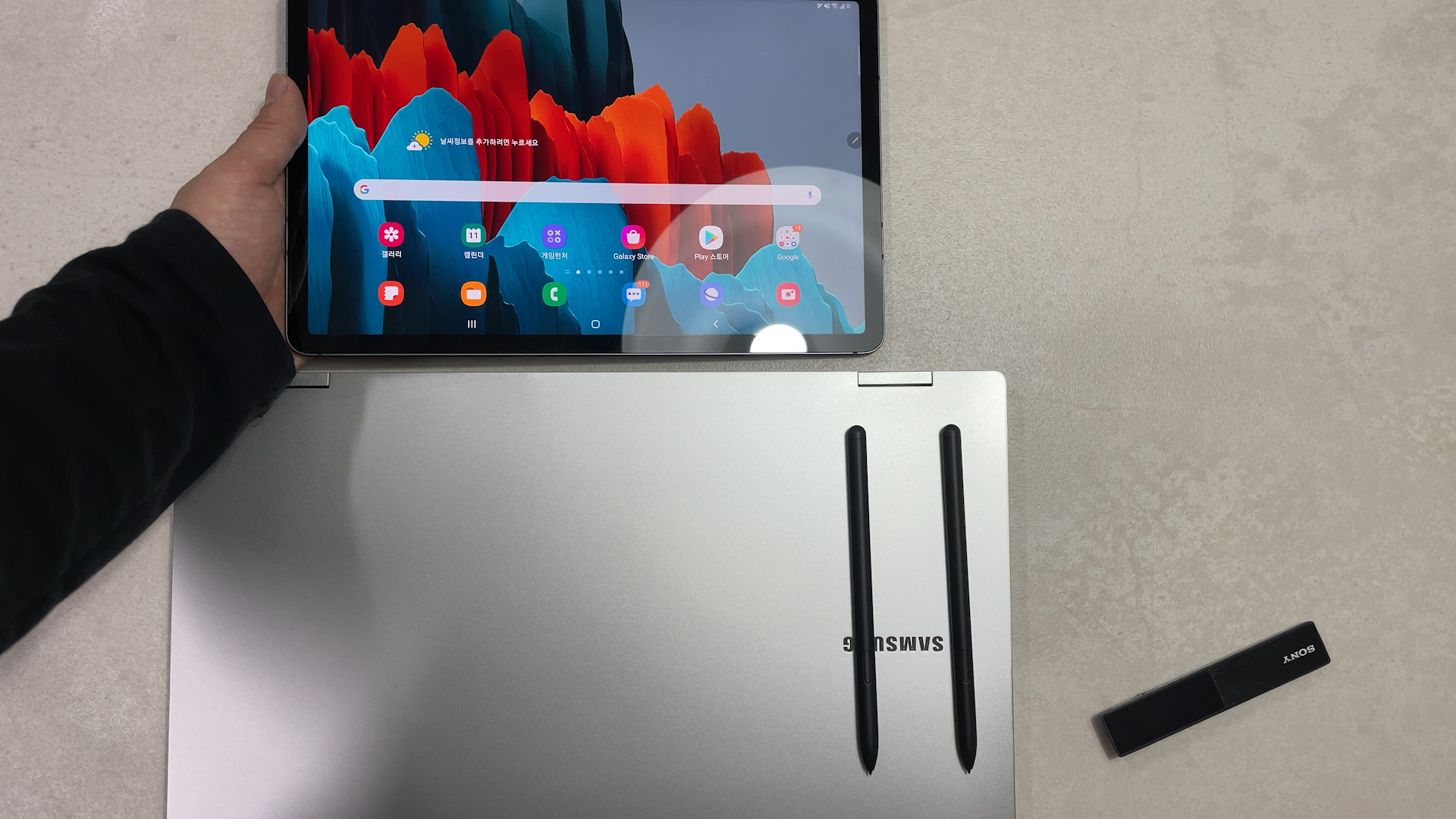 워밍업으로 기본 동봉 펜은 삼성 갤럭시탭 S7 펜과 완전 똑같잖아요 원래 펜을 갤럭시탭 S7에 붙이면 충전 표시가 떠요