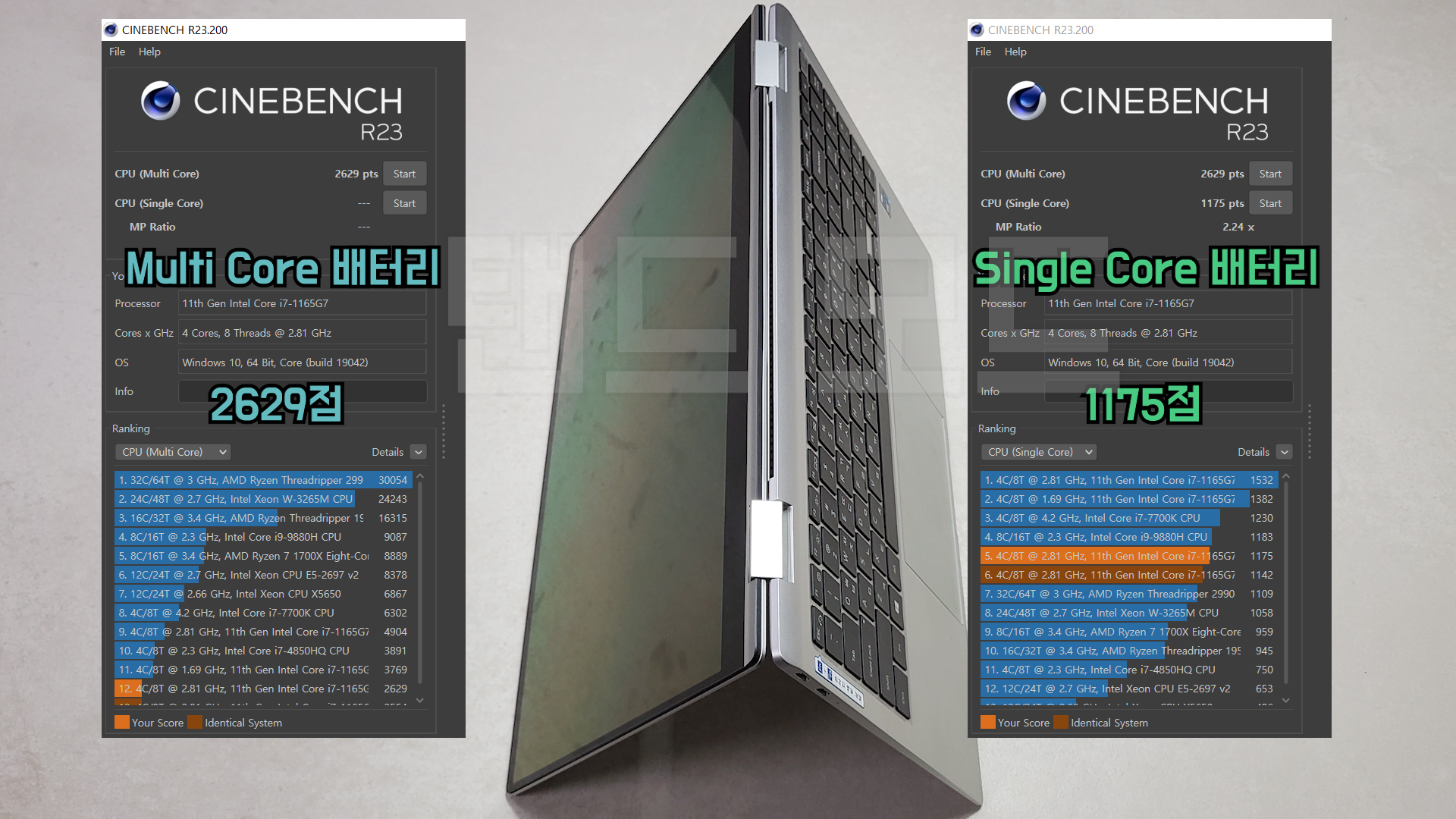 멀티코어는 2629점이 나왔고 싱글코어는 1175점이 나왔습니다