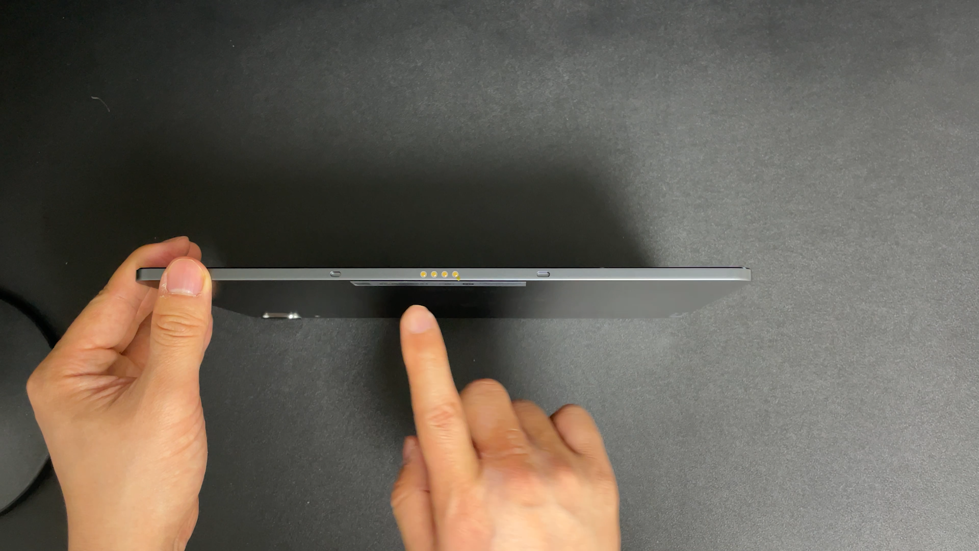 그리고 또 돌리면 하단에 포고핀이 있어서 키보드를 연결해서 사용할 수 있습니다.