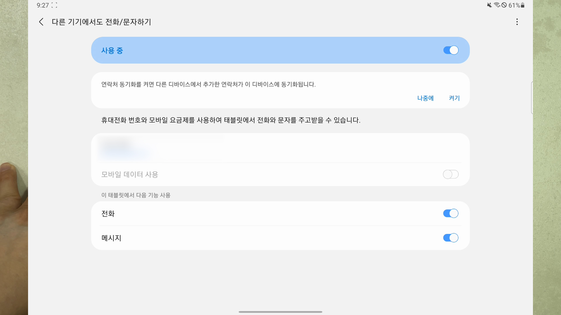 이렇게 전화나 문자를 태블릿에서도 사용할 수 있게 연결이 되었습니다.