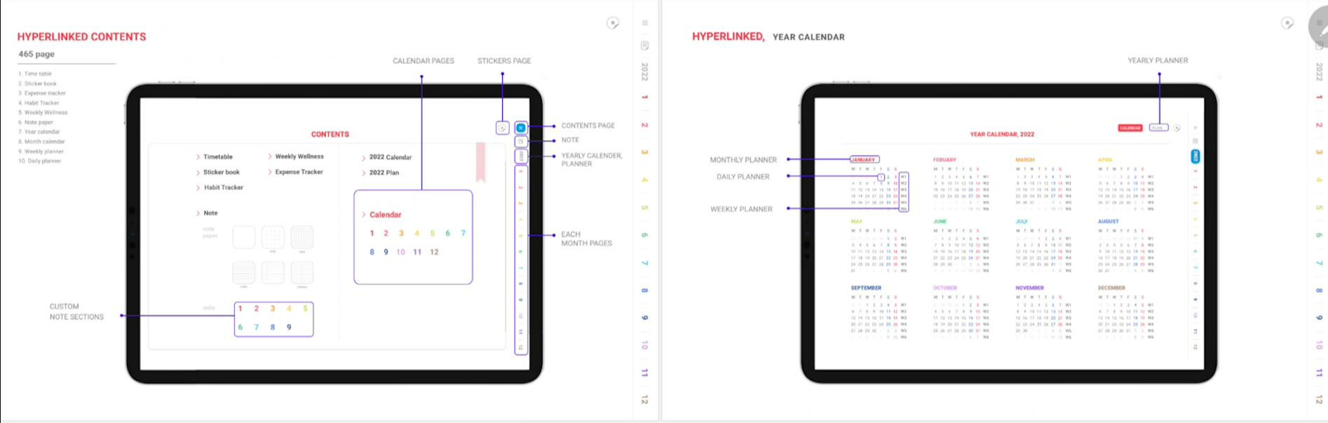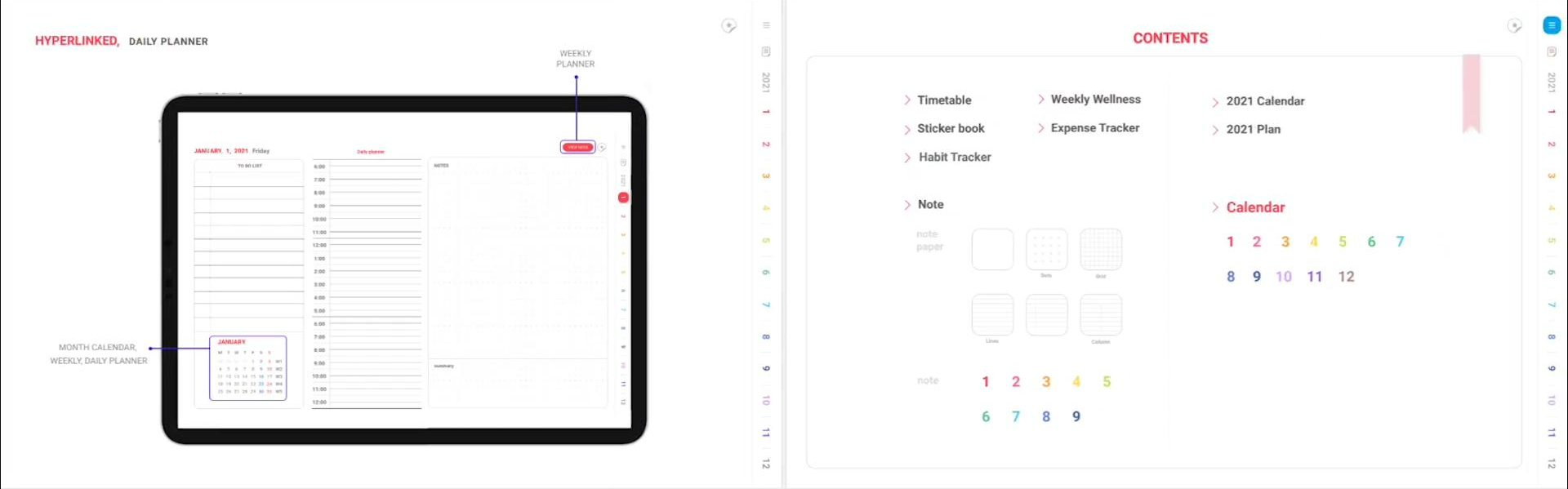 다이어리는 깔끔하게 잘 만든 것 같네요. 기본 달력과 월별 표시, 데일리 노트까지 구성이 알차게 되어 있습니다. 데일리 노트는 할일, 일정, 노트까지 한페이지에서 관리할 수 있도록 되어 있습니다. 직장인들에게 적합한 구성입니다.