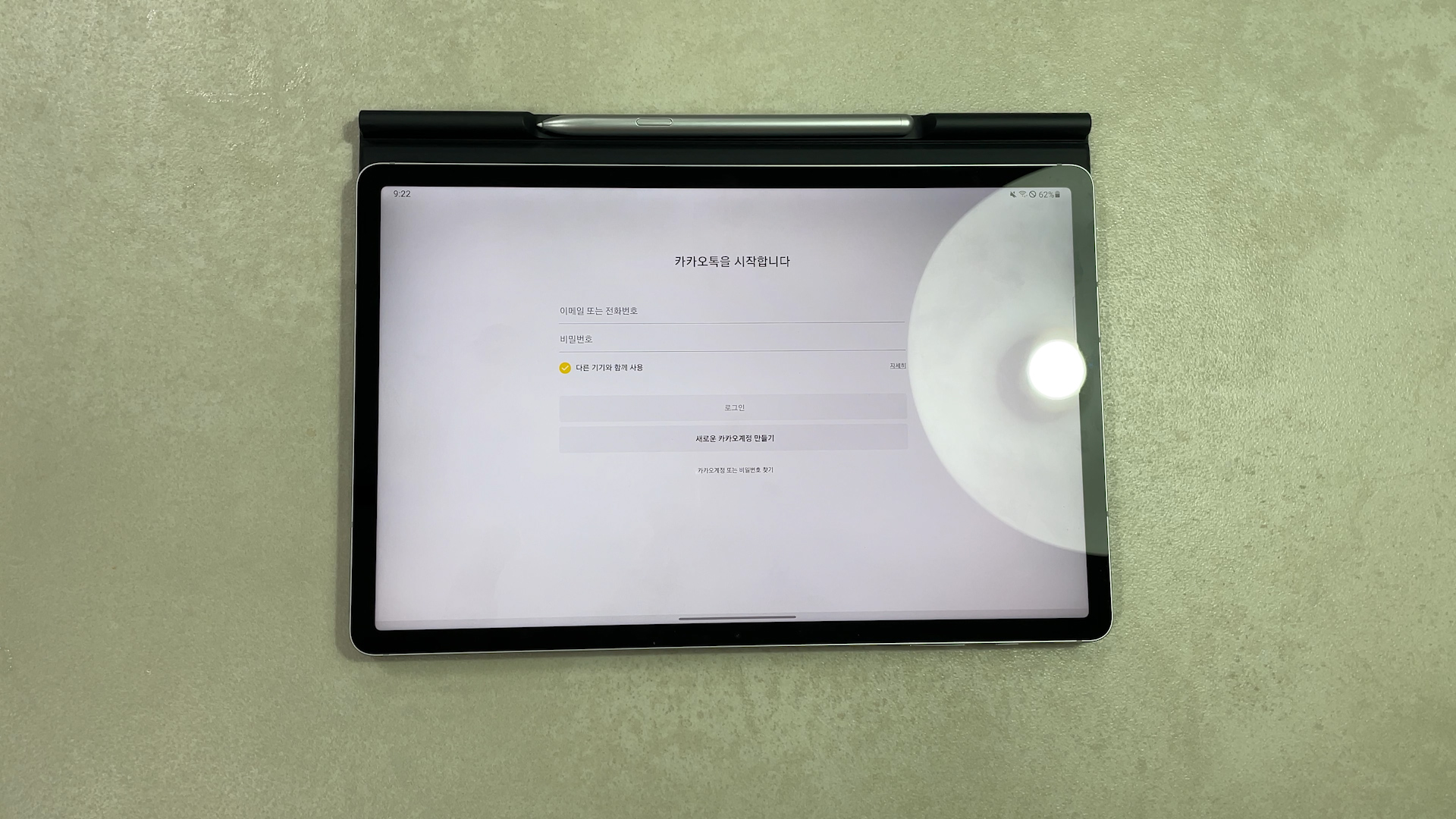 다음은 갤럭시탭S7 FE의 장점인 카카오톡 연동에 대해서 보여 드릴께요. 보통은 스마트폰과 안드로이드 태블릿은 하나의 계정을 동시에 로그인할 수 없지요. 아이패드는 동시 로그인이 가능해서, 많은 분들이 부러워 했던 기능인데요. 그 기능이 갤럭시탭에서도 가능하게 되었습니다.