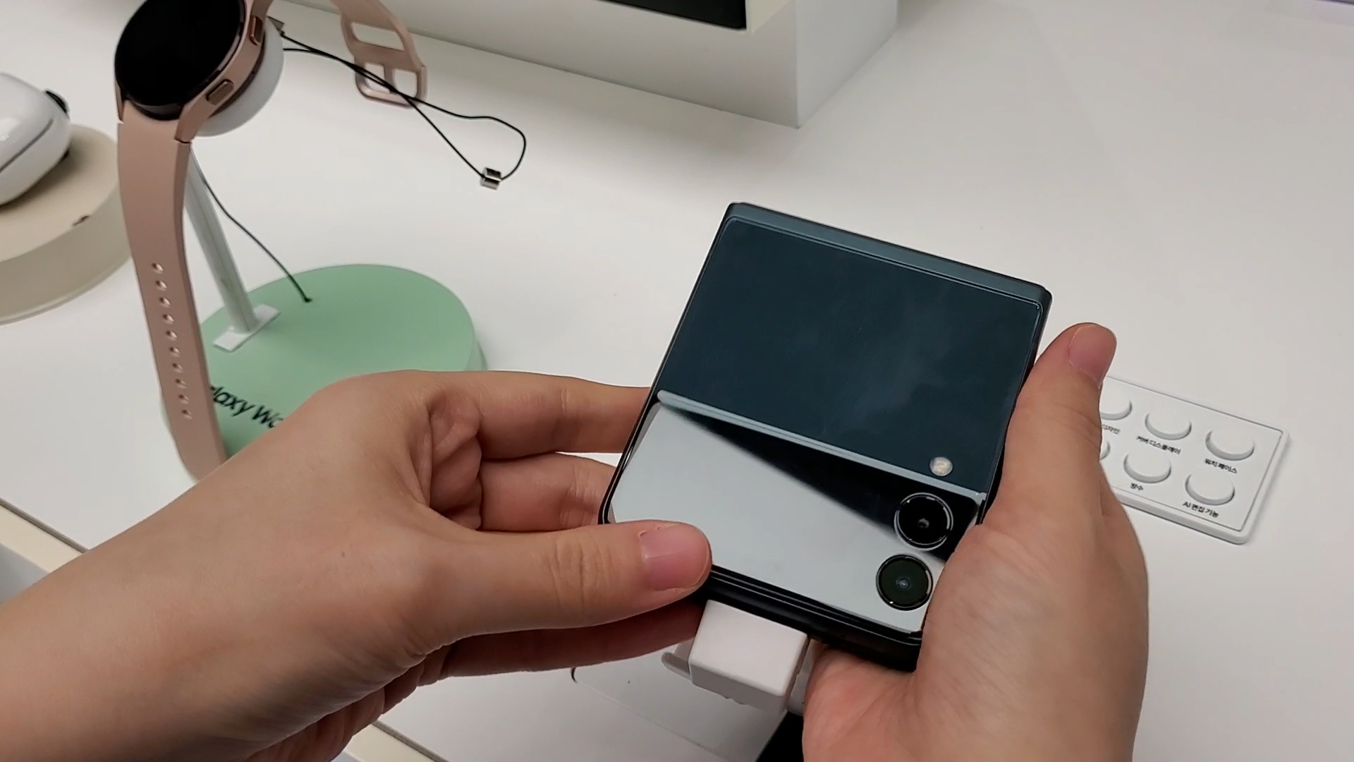 제가 현재 사용중인 Flip1과 비교해 봤어요 가죽케이스를 착용한 상태라서 전면 액정 크기 차이만 봐주세요 엄청 차이가 나죠? 펼쳤을 때는 큰 차이는 없습니다.