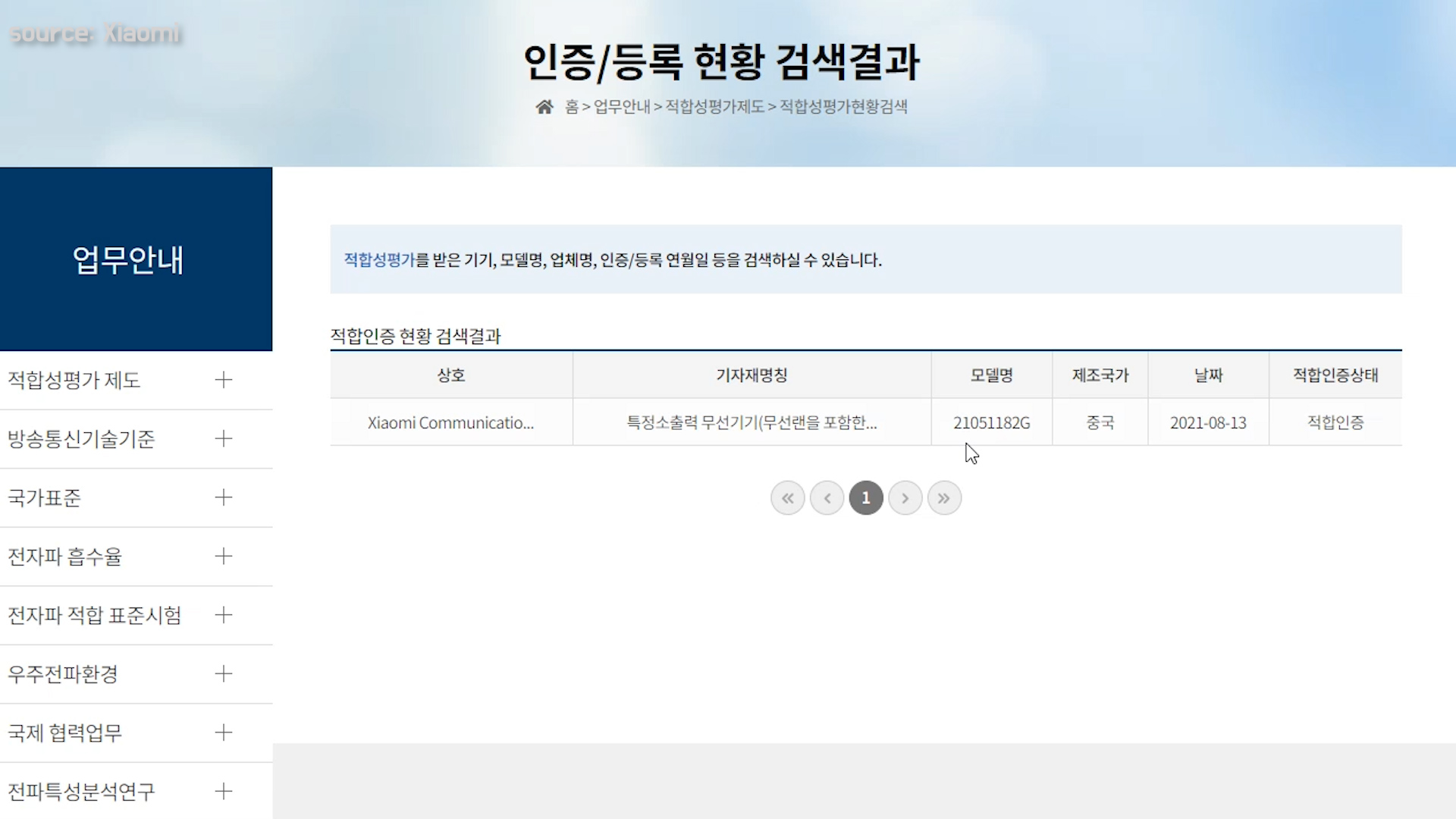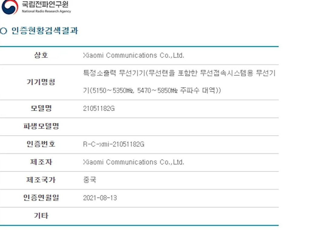 실제로 8월 13일에 국립전파연구원에 전파인증을 마친 상태로 기기 모델명은 21051182G 모델입니다.