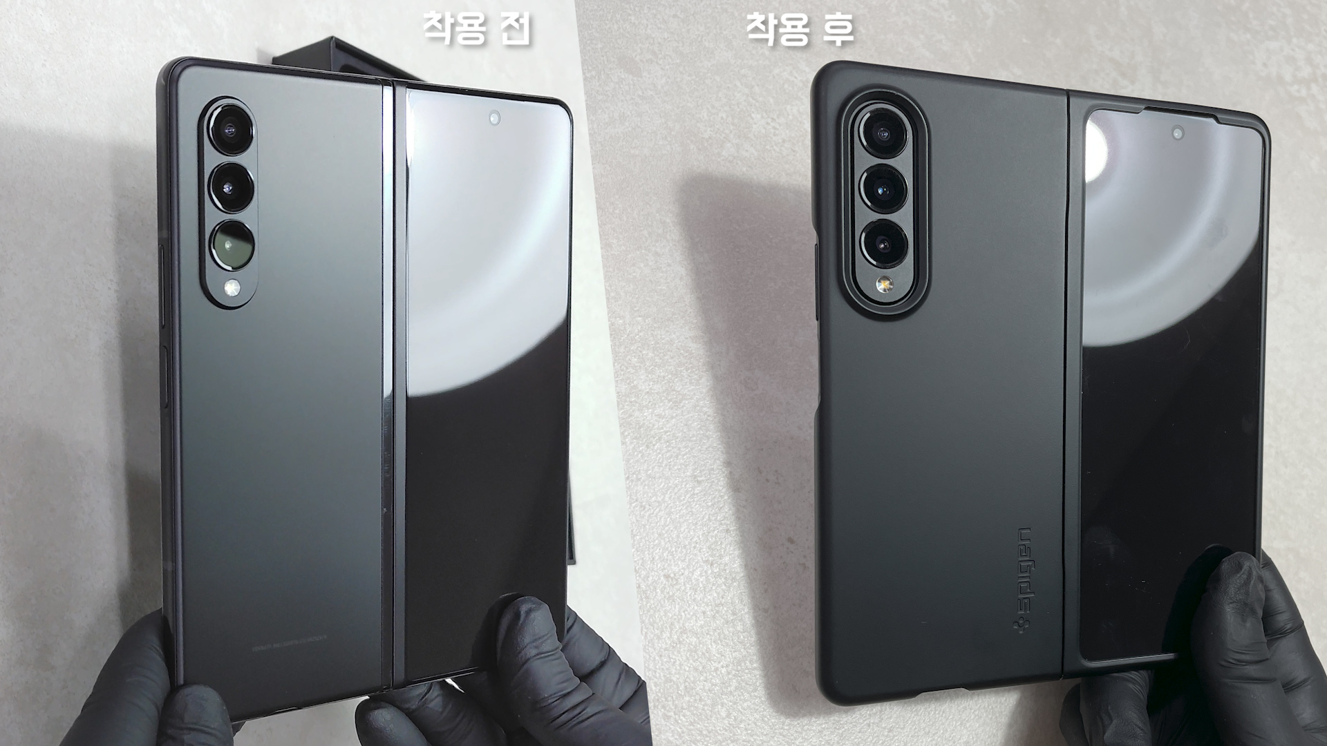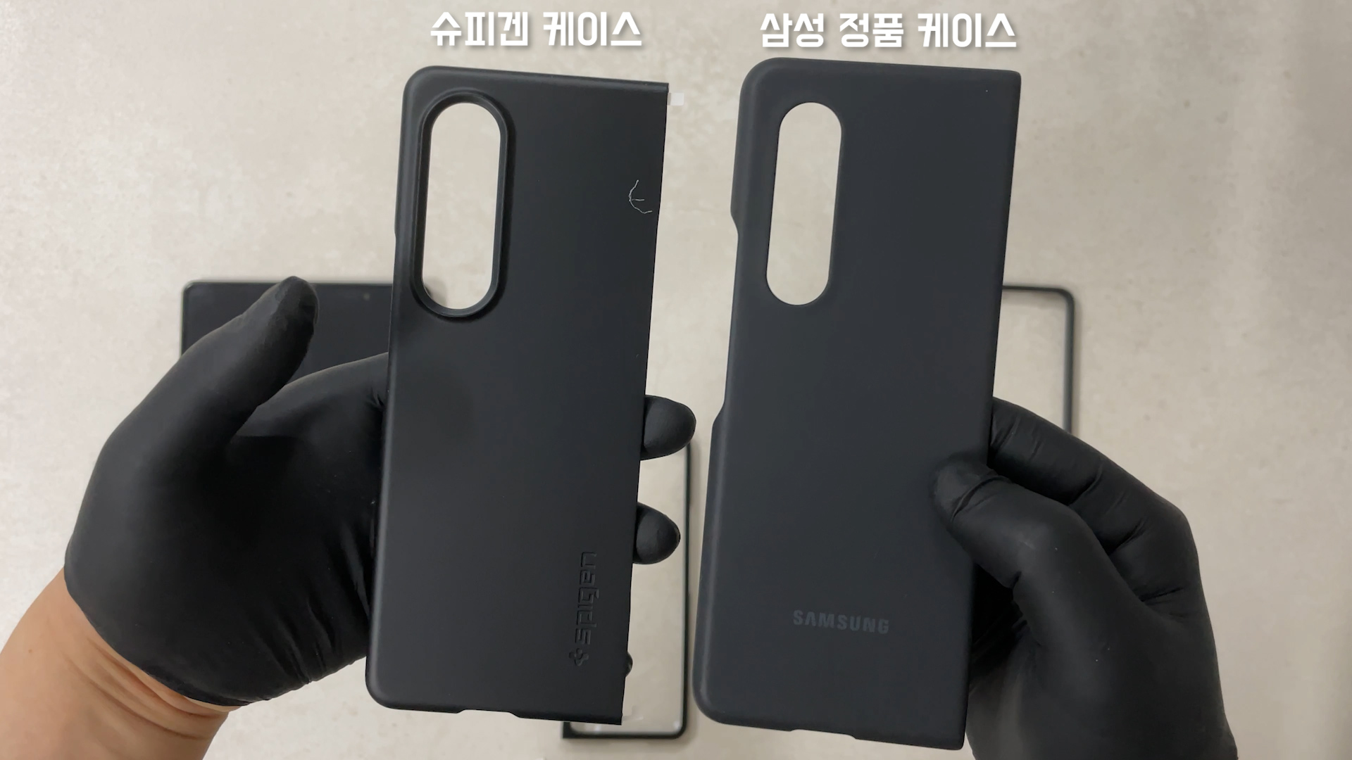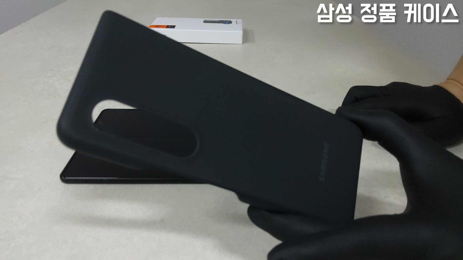 지난 언박싱 영상에서 삼성 정품 케이스를 착용하면