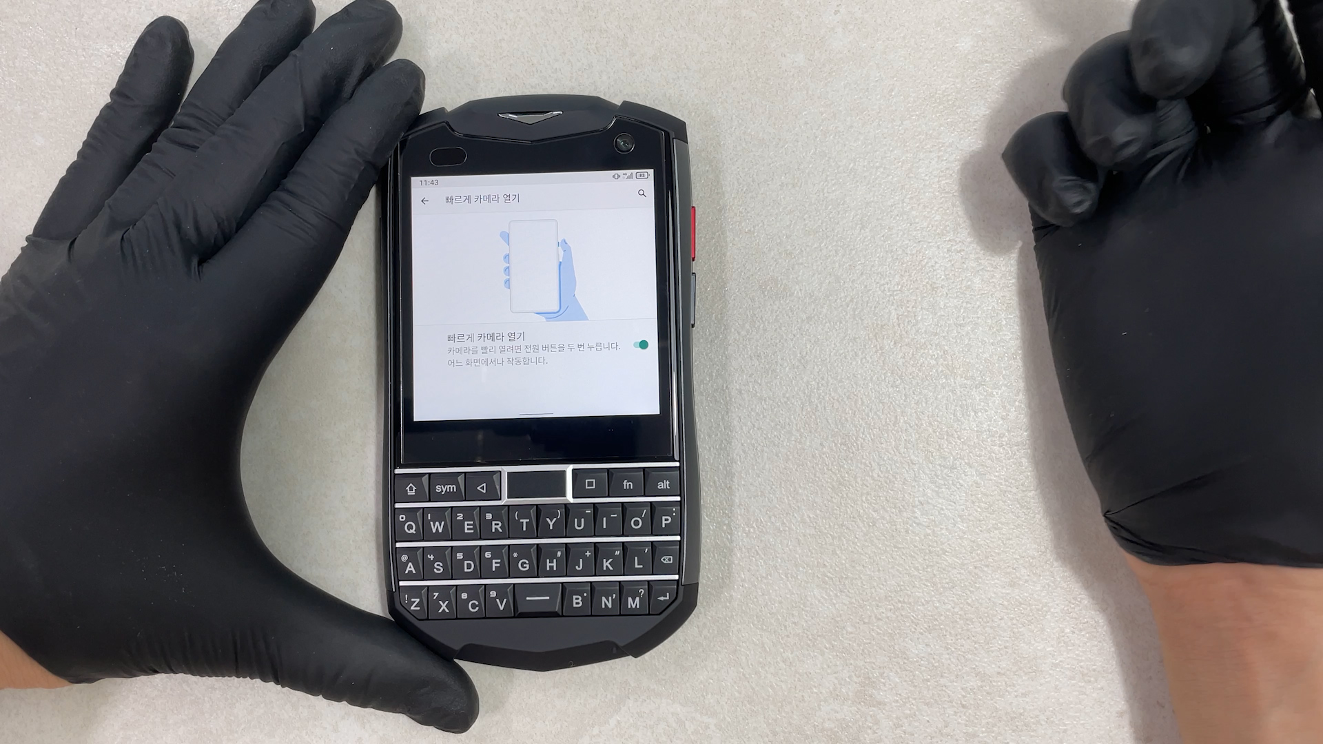 특수키는 연속으로 누르면 캡쳐하는 기능이 되고 한번만 길게 누르면 조명이 켜집니다. 러기드 폰이라서 거친 환경에서 많이 사용하기 때문에 단축키로 조명기능을 사용하면 산에서 등산할 때에도 유용하게 사용할 수 있을 것 같습니다. 그래서 이 단축키 기능도 그대로 놔두고 쓰는걸 추천 드립니다.