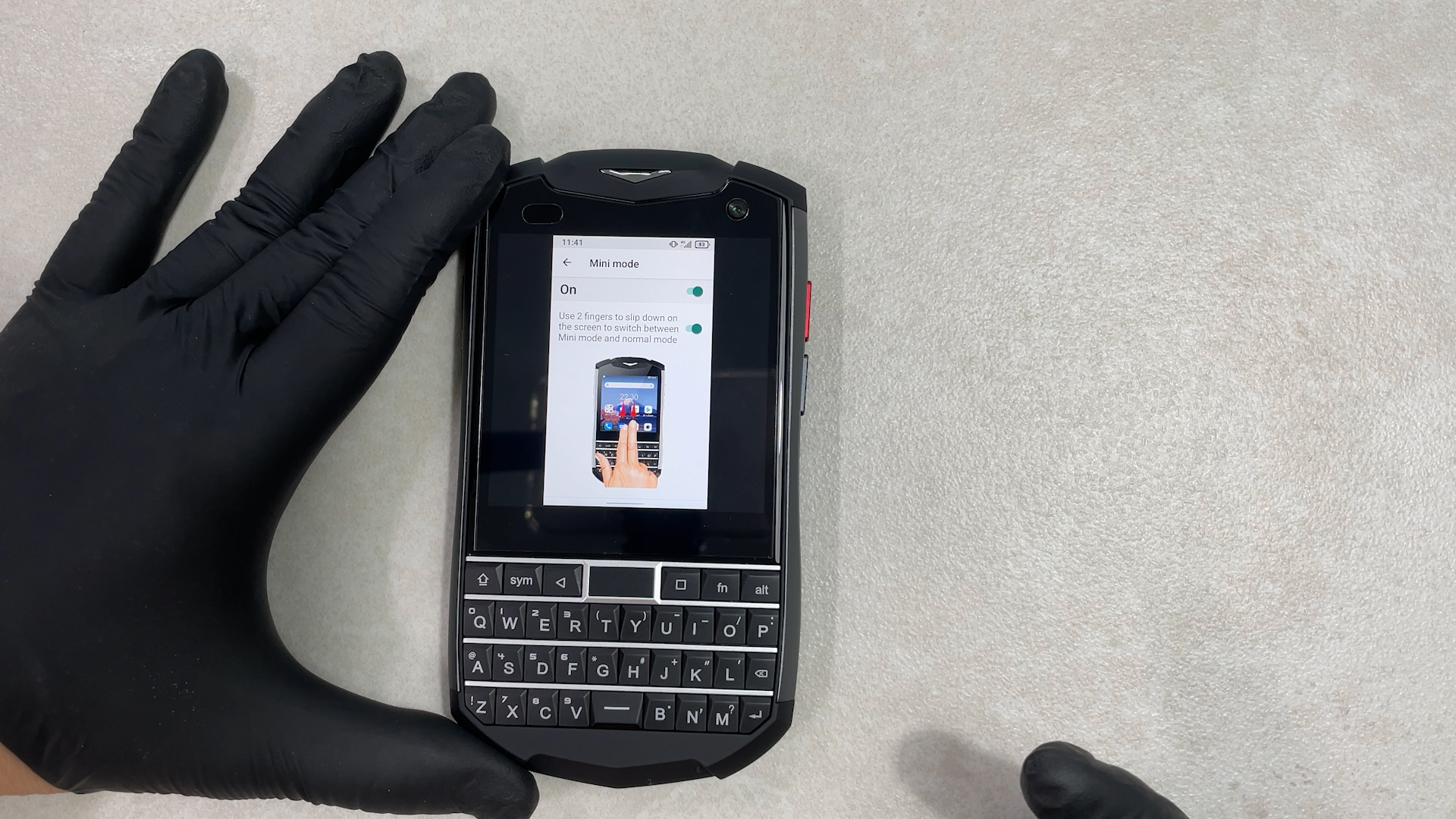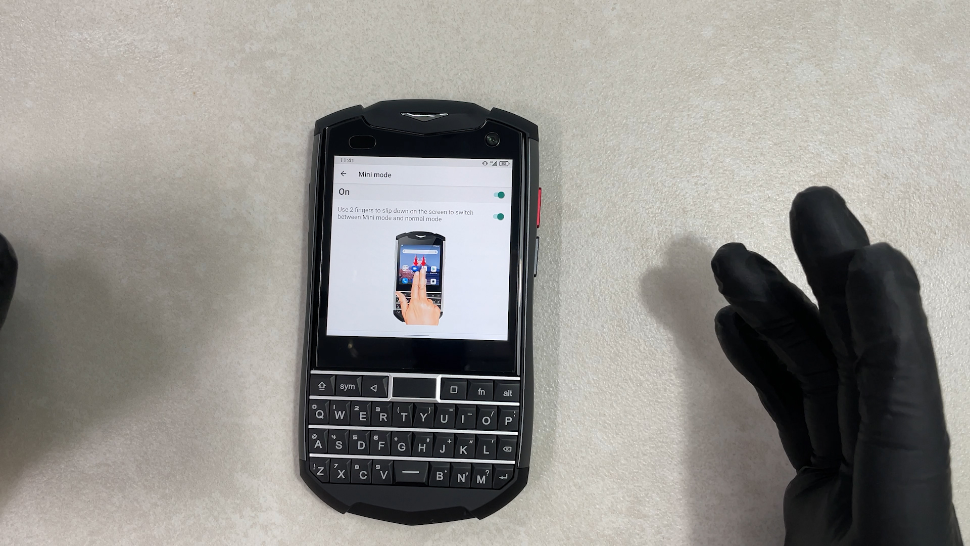 설정 > intelligent assistance > Mini Mode 를 체크를 하게 되면은 두 손가락을 쓸어내리면 화면이 기존 스마트폰과 똑같이 변경이 됩니다.