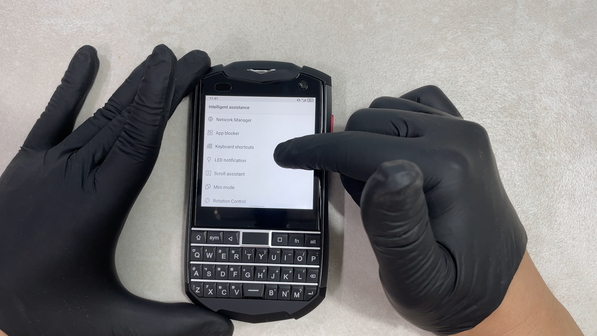 설정 > intelligent assistance > Scroll assistant 에서 체크하면 키보드로 스크롤이 동작됩니다. 화면을 가리지 않고 스크롤이 가능하다는 거는 정말 좋은 기능입니다.