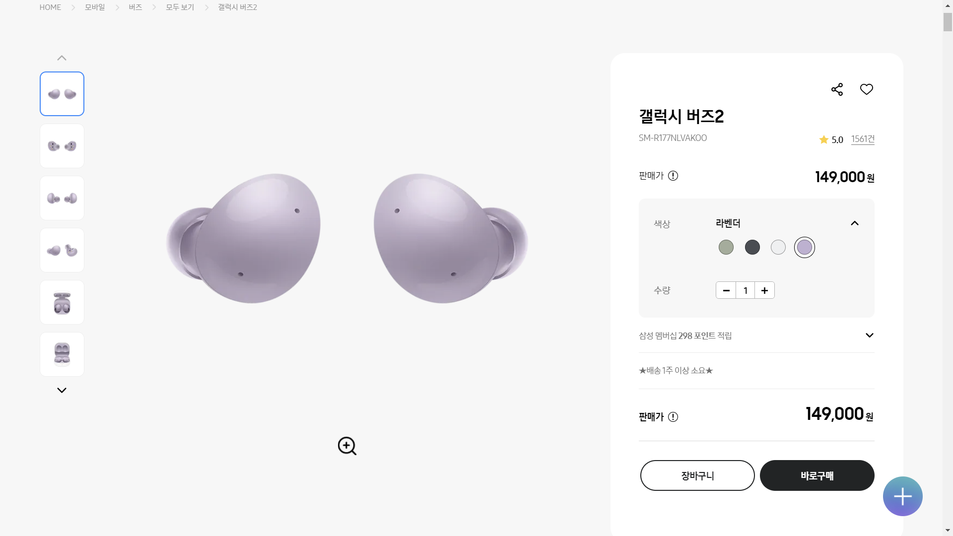 그리고 갤럭시 버즈 2 가격은 149,000원입니다
