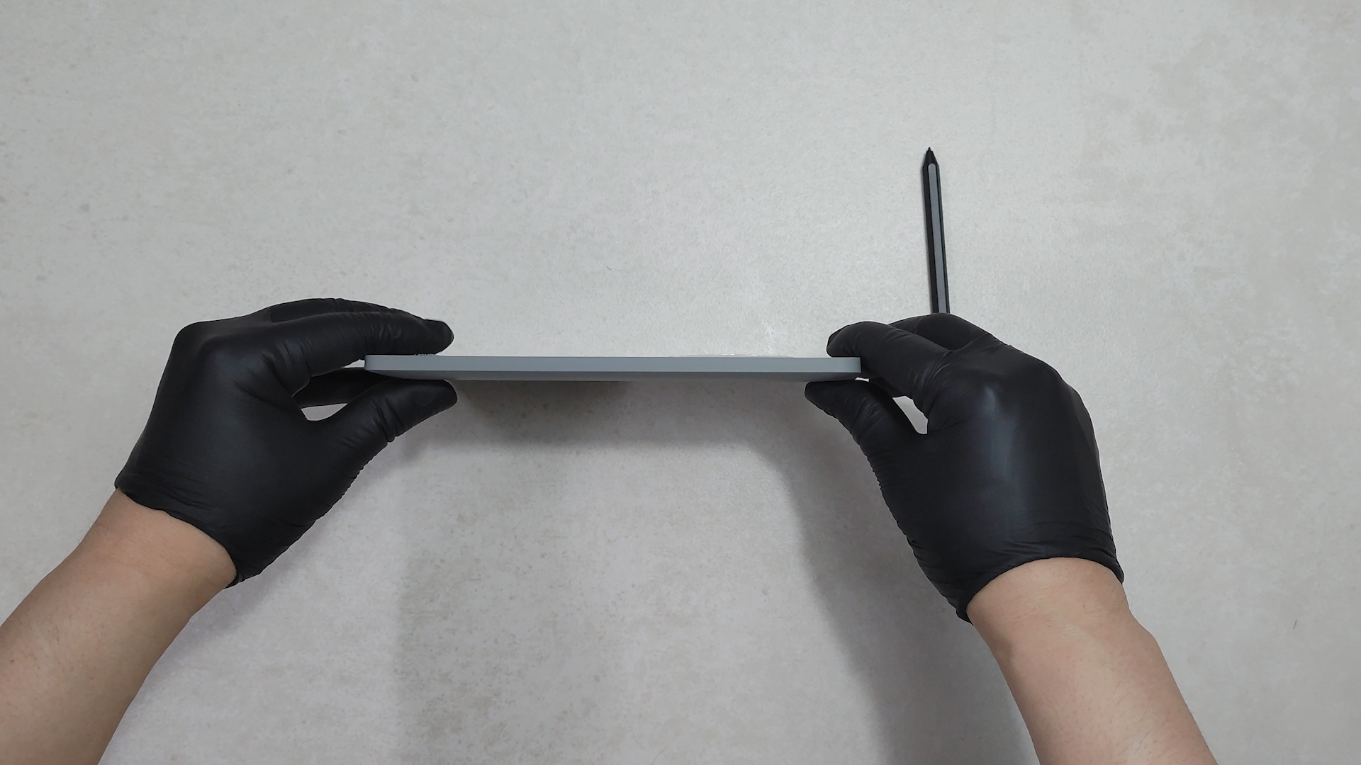S펜과 똑같은 와콤 EMR 방식에 펜을 동봉해 주고 있습니다. 뒤쪽은 이렇게 지우개 버튼이 있습니다. EMR 방식의 장점은 별도로 충전을 하지 않아도 되고요 필기감이 상당히 좋습니다.