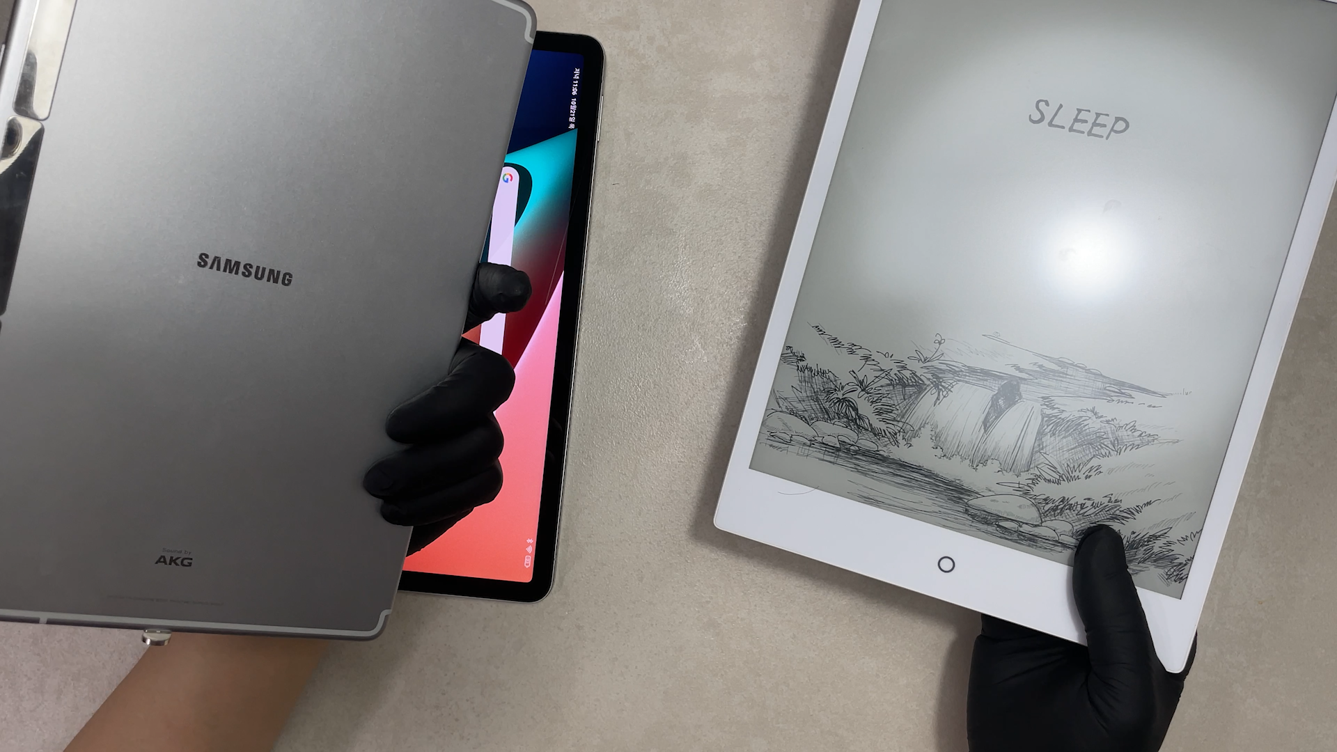 반면에 갤럭시 탭 S5e 같은 경우는 e북 단말기하고 거의 무게가 비슷할 정도로 굉장히 얇고 가벼워요