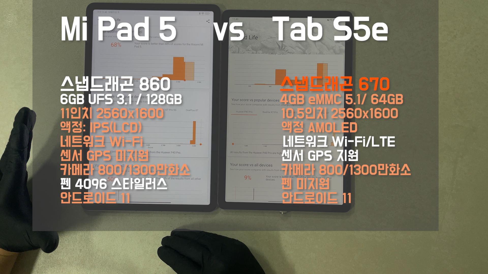 오늘은 갤럭시 탭 S5e 제품과 사오미패드5 제품을 비교해보겠습니다