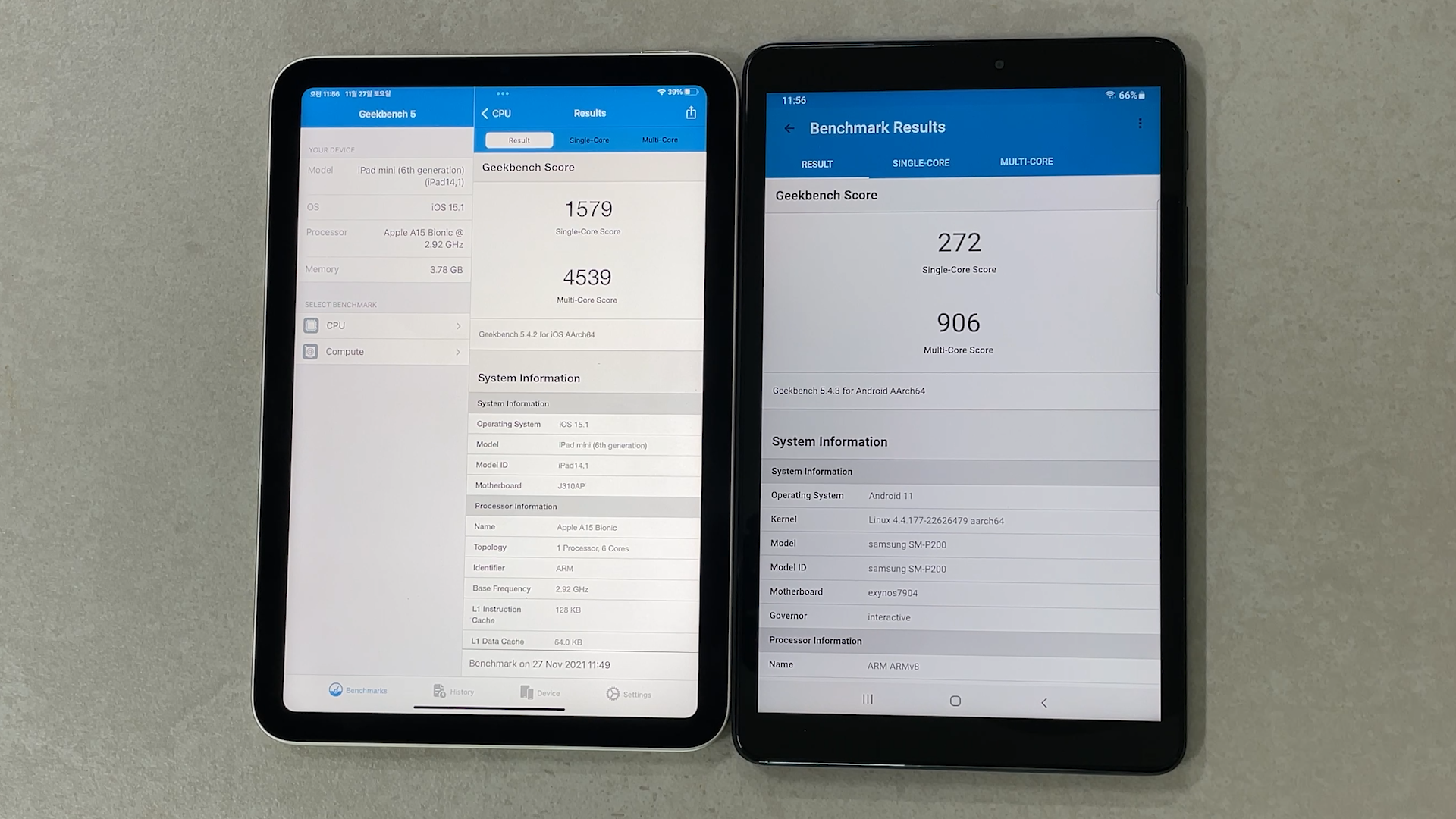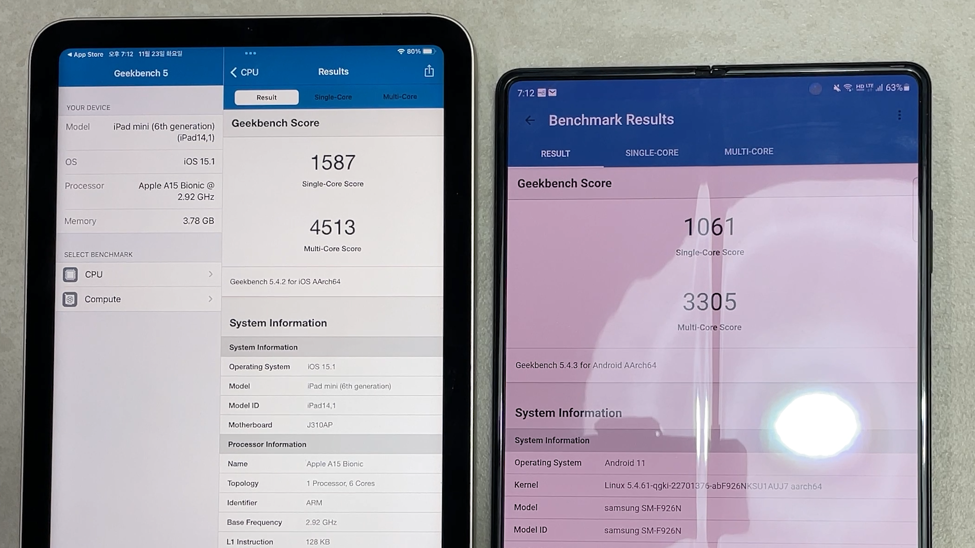 아이패드 미니6세대는 싱글코어 1587점, 멀티코어 4513점이 나왔습니다.