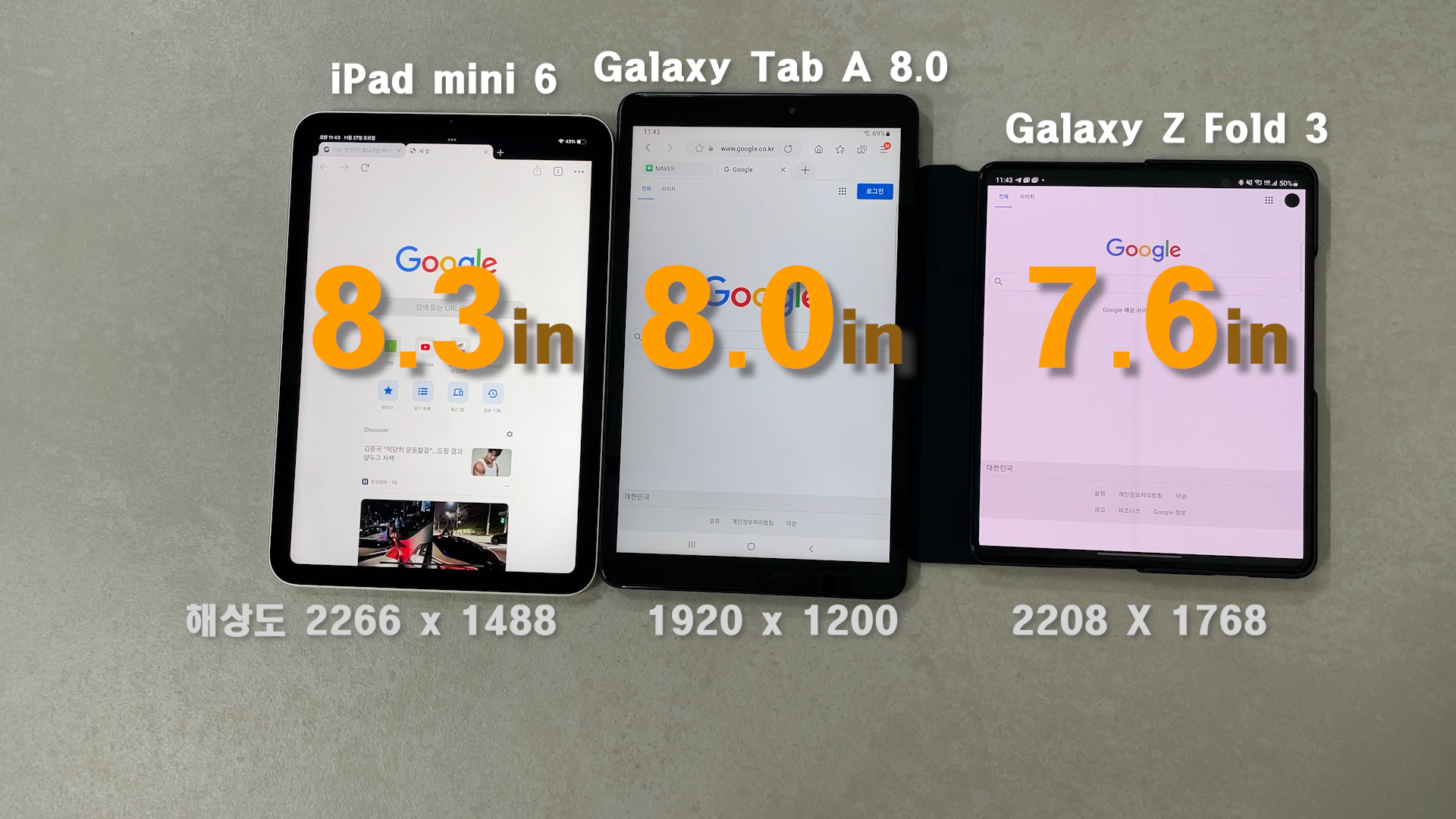 아이패드 미니6세대와 z폴드3를 비교해 보겠습니다.