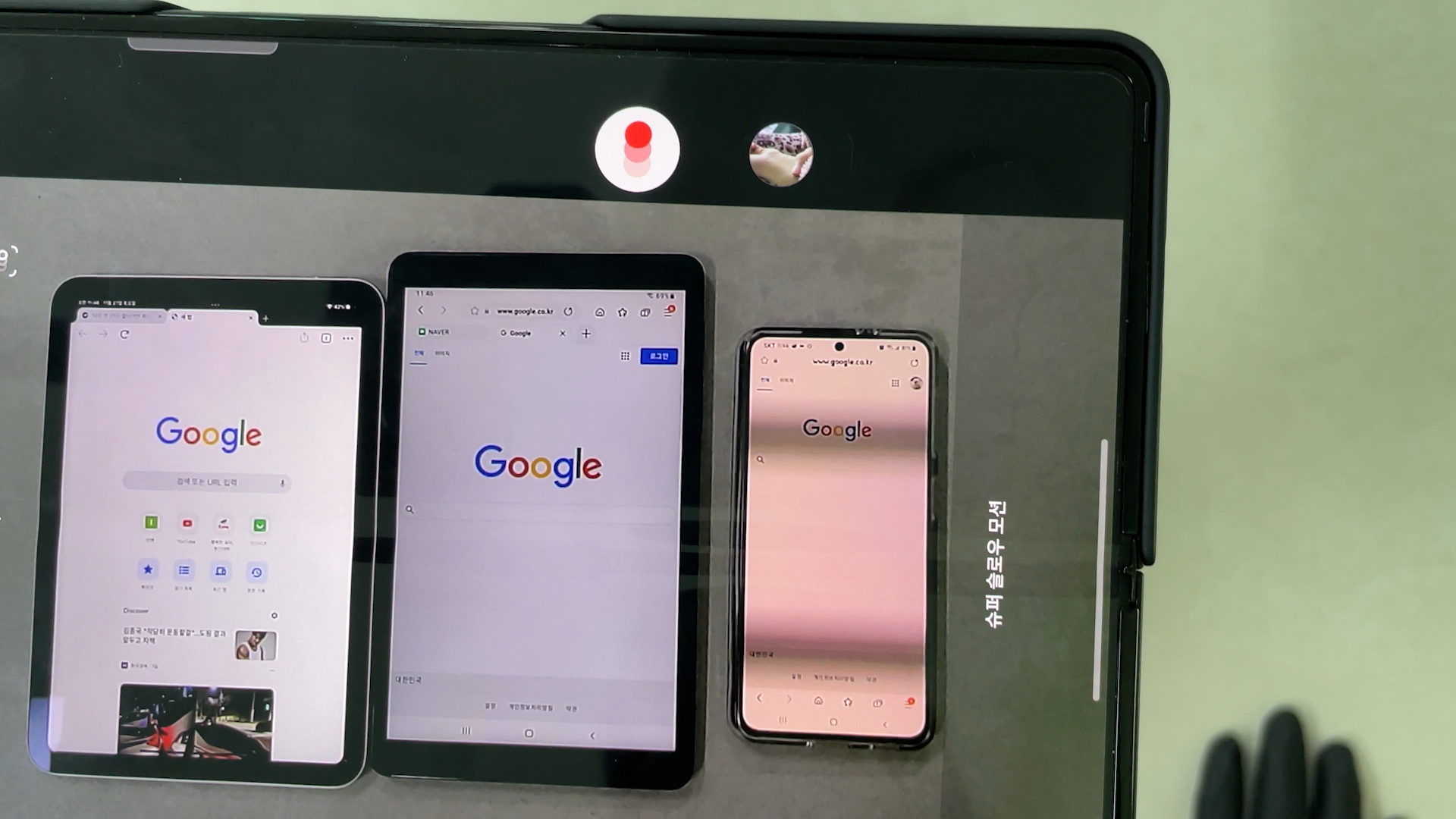 z폴드3는 비율 차이로 인한 레터박스가 생겨서 영상 시청하기에는 적합하지 않습니다.