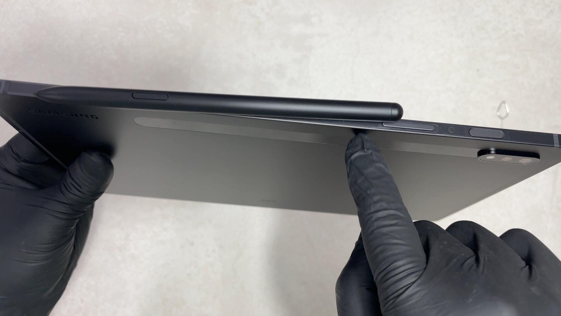S펜은 방향은 개선이 안 됐기 때문에 이쪽으로 하면은 부착이 잘 안 됩니다. 꼭 카메라 쪽에 펜촉이 향하도록 부착을 해야 됩니다.