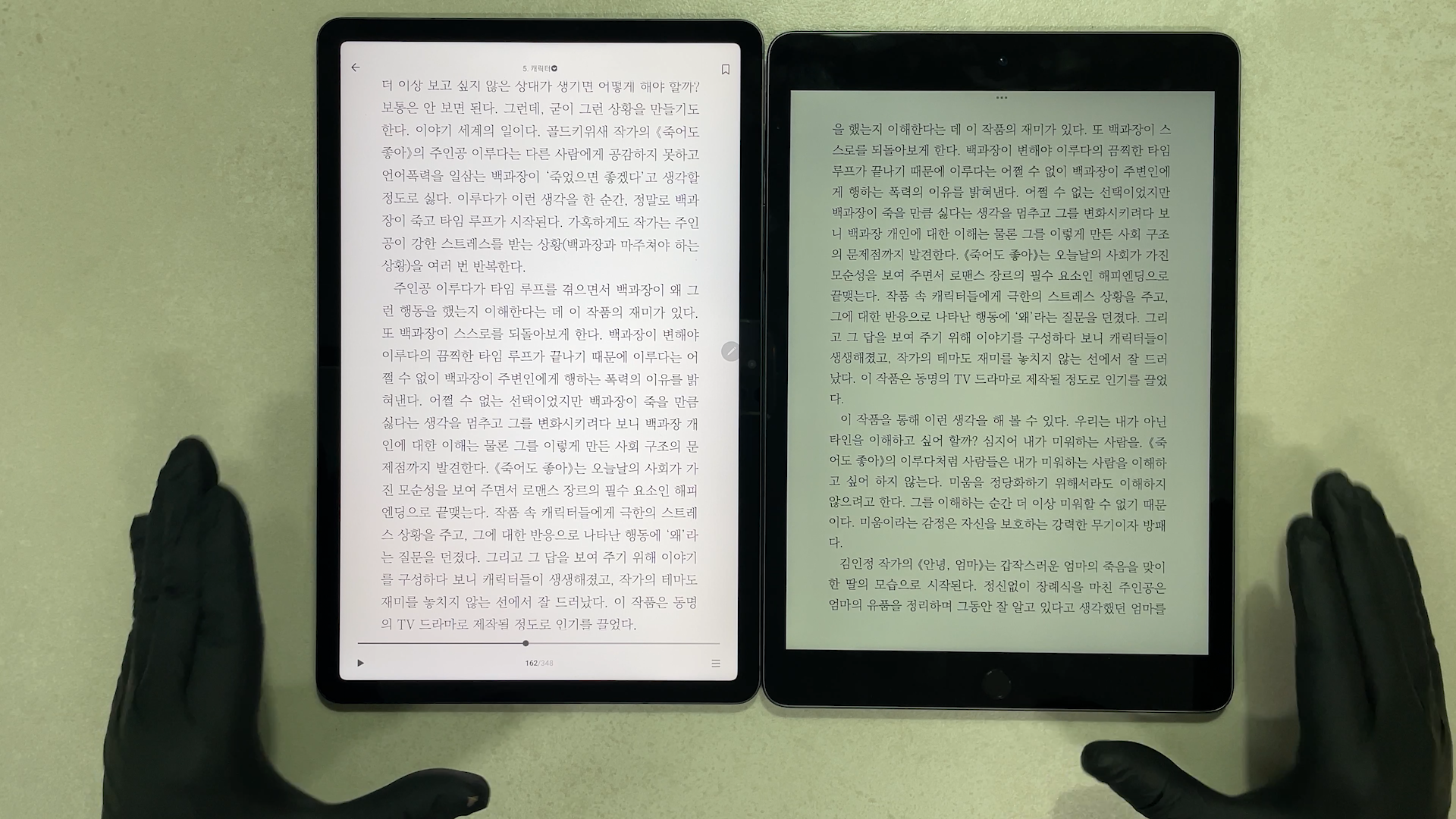 우측이 iPad 9세대 좌측은 갤럭시탭S8 11인치 입니다.