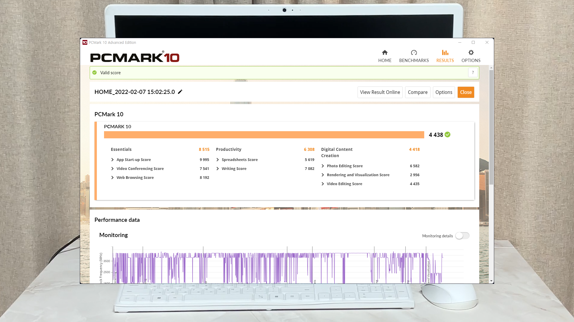 PCMark도 테스트해보니 4438점이 나왔습니다.