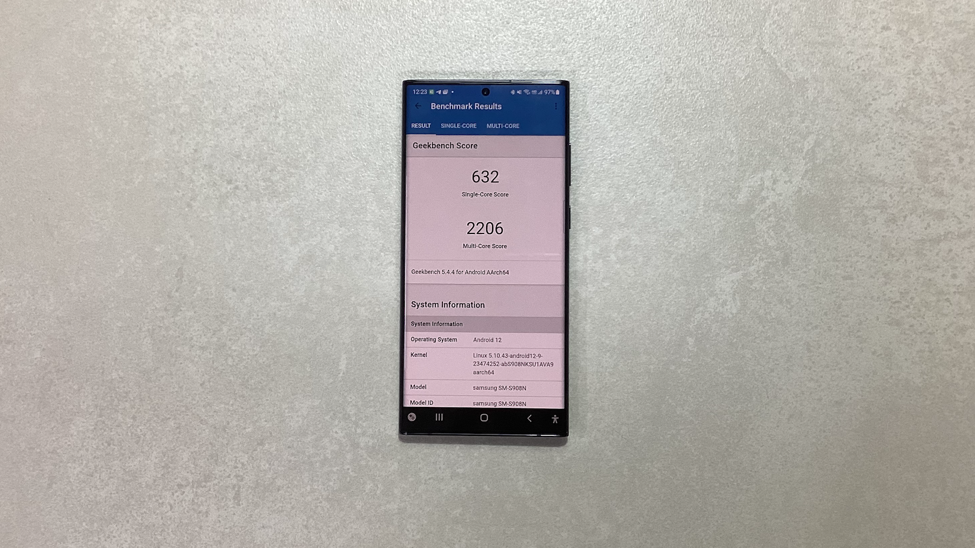 근데 GOS앱을 적용하면 싱글코어 632점, 멀티코어 2206점이 나오네요.