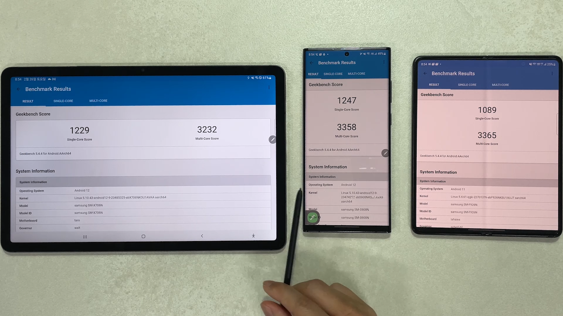 저도 벤치마크 앱으로 확인을 해봤는데요 GOS앱이 적용되지 않은 긱벤치5는 싱글코어 1247점, 멀티코어 3358점이 나왔습니다.
