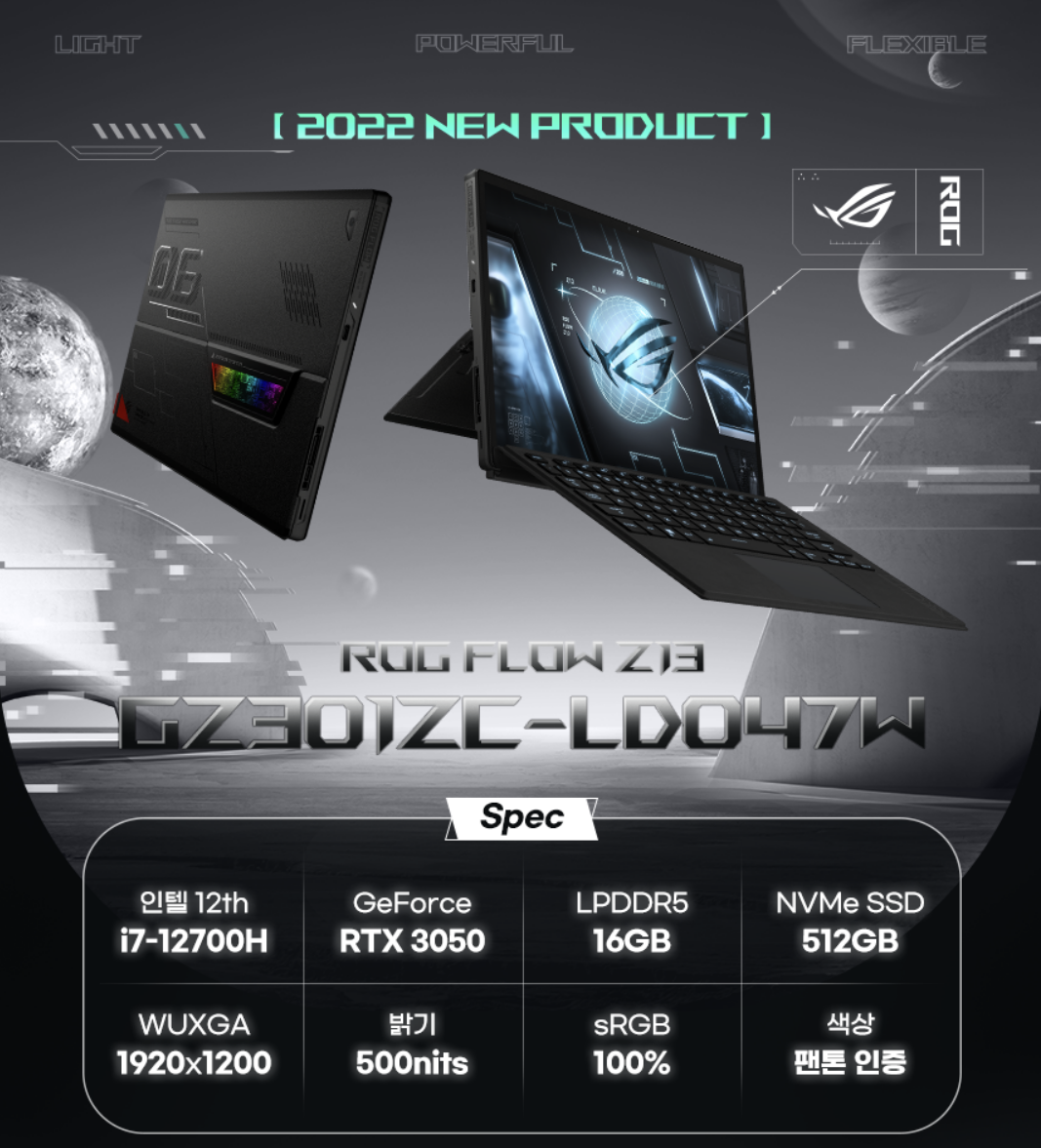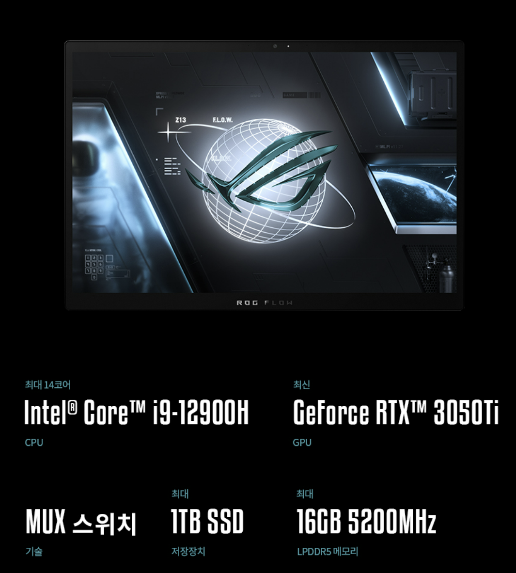[11번가] [3월7일 런칭!!]ASUS ROG Flow Z13 GZ301ZE-LC032W 인텔12세대 i9-12900H/RTX3050Ti/16GB/NVMe1TB/500Nits