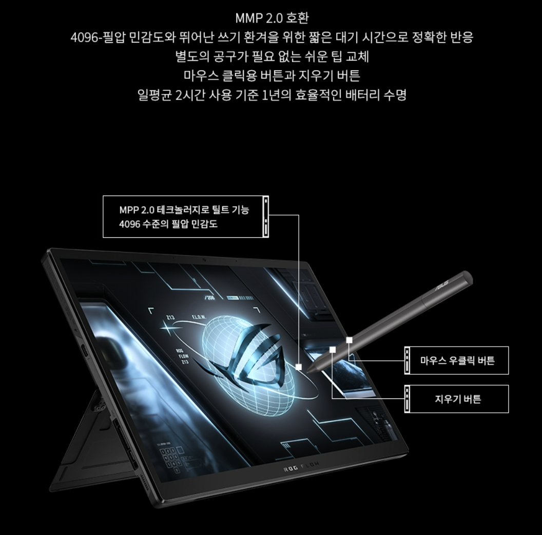 4096 레벨의 ASUS 터치 펜을 기본으로 제공하고 있습니다.