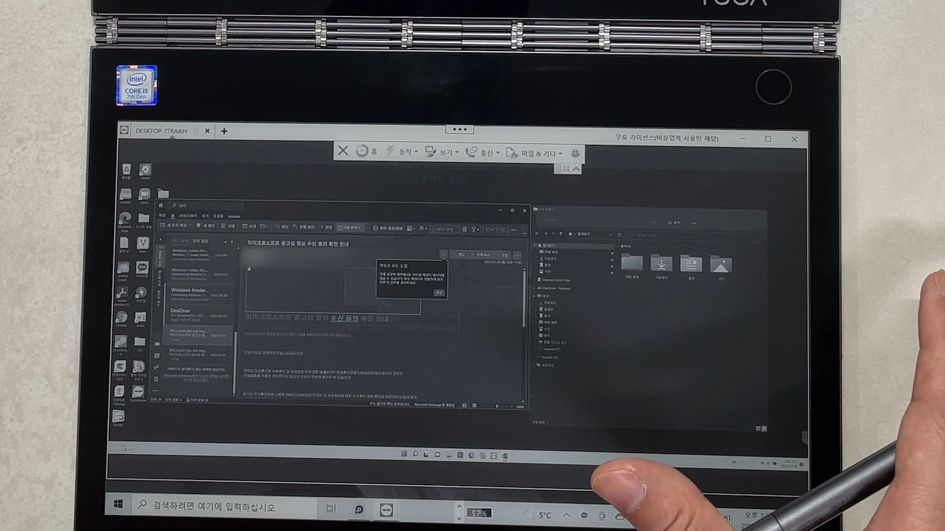 엑셀도 마찬가지죠 출력해서 이북 리더기에 넣기는 힘들죠 이럴 때 이북 모니터가 있으면 좋겠다고 생각하는 분들이 있으시죠? 요가북 C930의 미러링 기능이 이북 모니터 역할을 하게 되는 거죠. 제가 가장 좋아하는 기능으로 전자책 프로그램들처럼 DPI Scaling 문제로 가독성이 크게 떨어지지 않아서 종종 사용하고 있습니다.