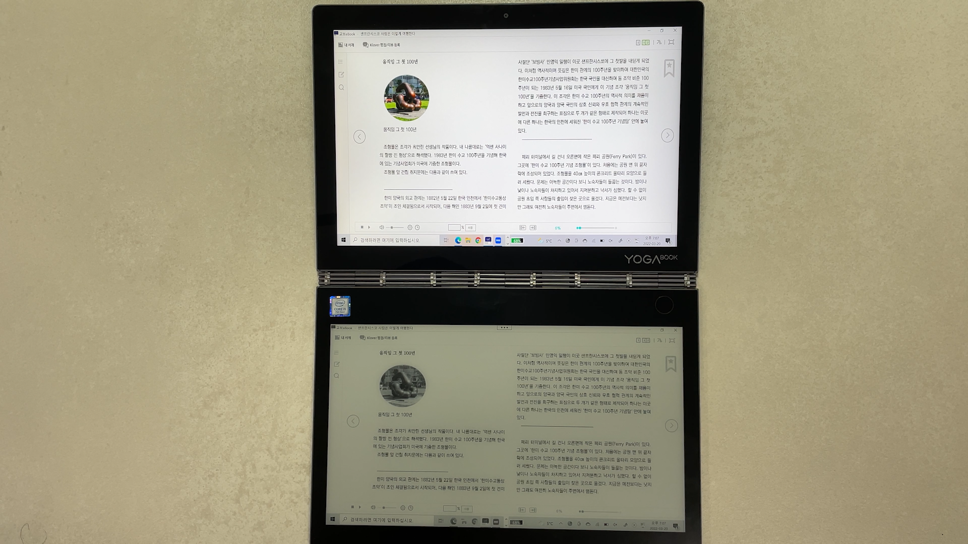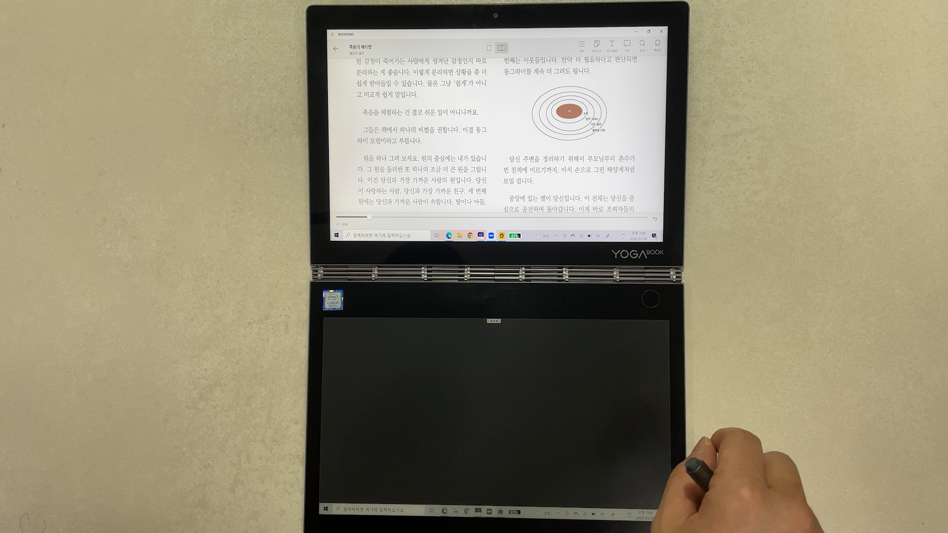 그래서 저는 국내 서점 앱은 전자책 리더기를 별도로 구입해서 사용하고 소장 문서만 요가북 C930으로 보는 것을 추천 드립니다. (가독성은 개인 편차가 있어서, 의견이 다를 수 있습니다.)