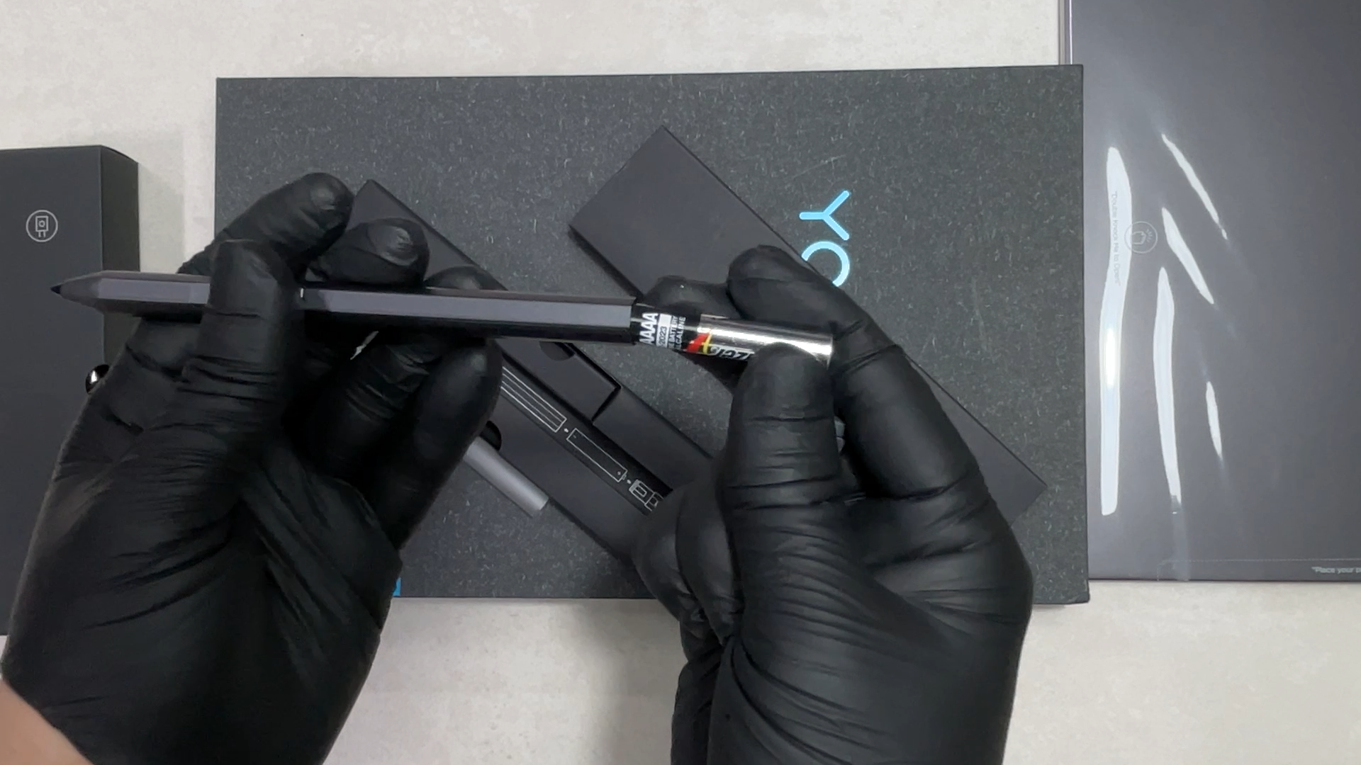 4096단계 필압을 지원하는 프리시젼 펜이 있습니다. AAAA 건전지가 들어가는 와콤 AES방식의 펜입니다.