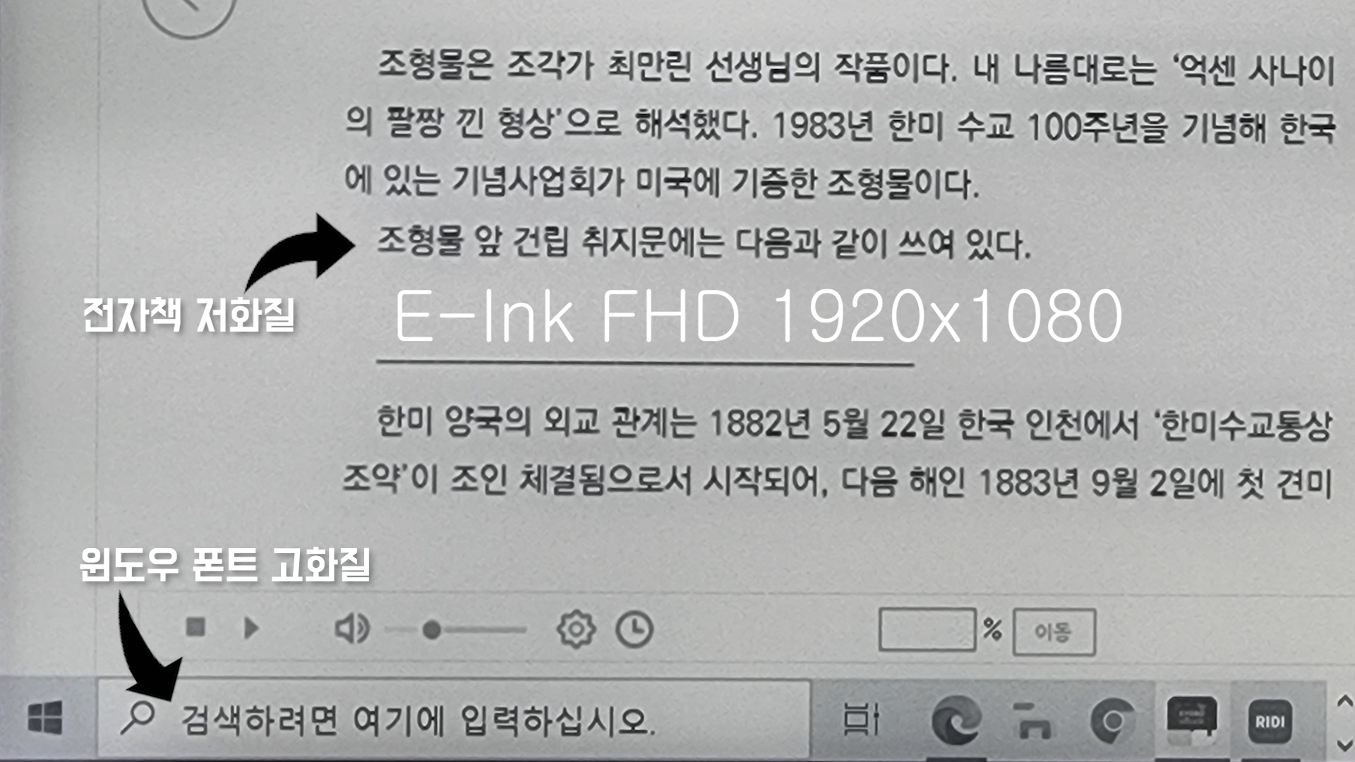 윈도우에서 사용하는 서점 프로그램을 복제 모드로 e-ink에 출력해서 미러링해서 보는 방식인데요.