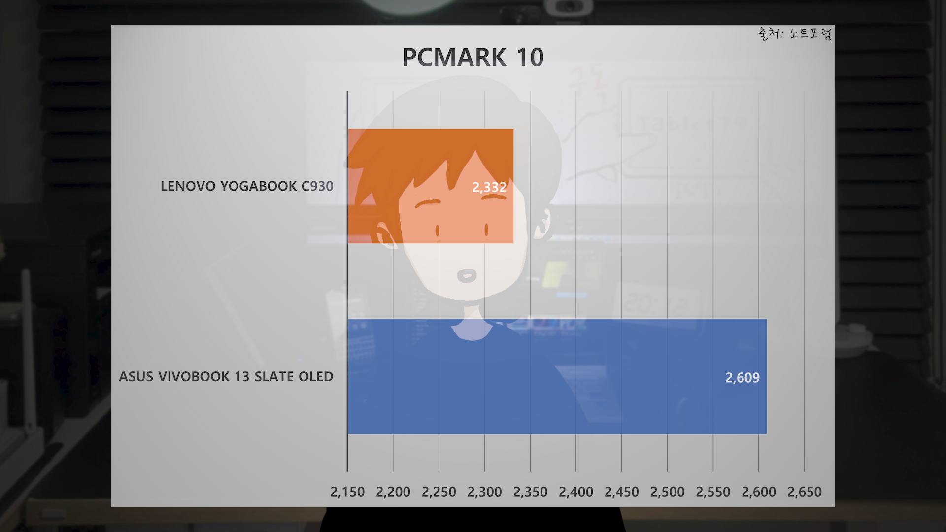 올해 출시해서 소개해 드린 ASUS Vivobook 13 Slate OLED 제품과 비교해 볼게요 이 제품이 펜티엄 N6000을 사용하고 있습니다. 요가북 C930은 PCMARK 10 점수가 2332점 Vivobook 13 슬레이트는 2609점입니다. 대충 요가북 C930 성능이 어느정도 인지 가늠이 되시죠?