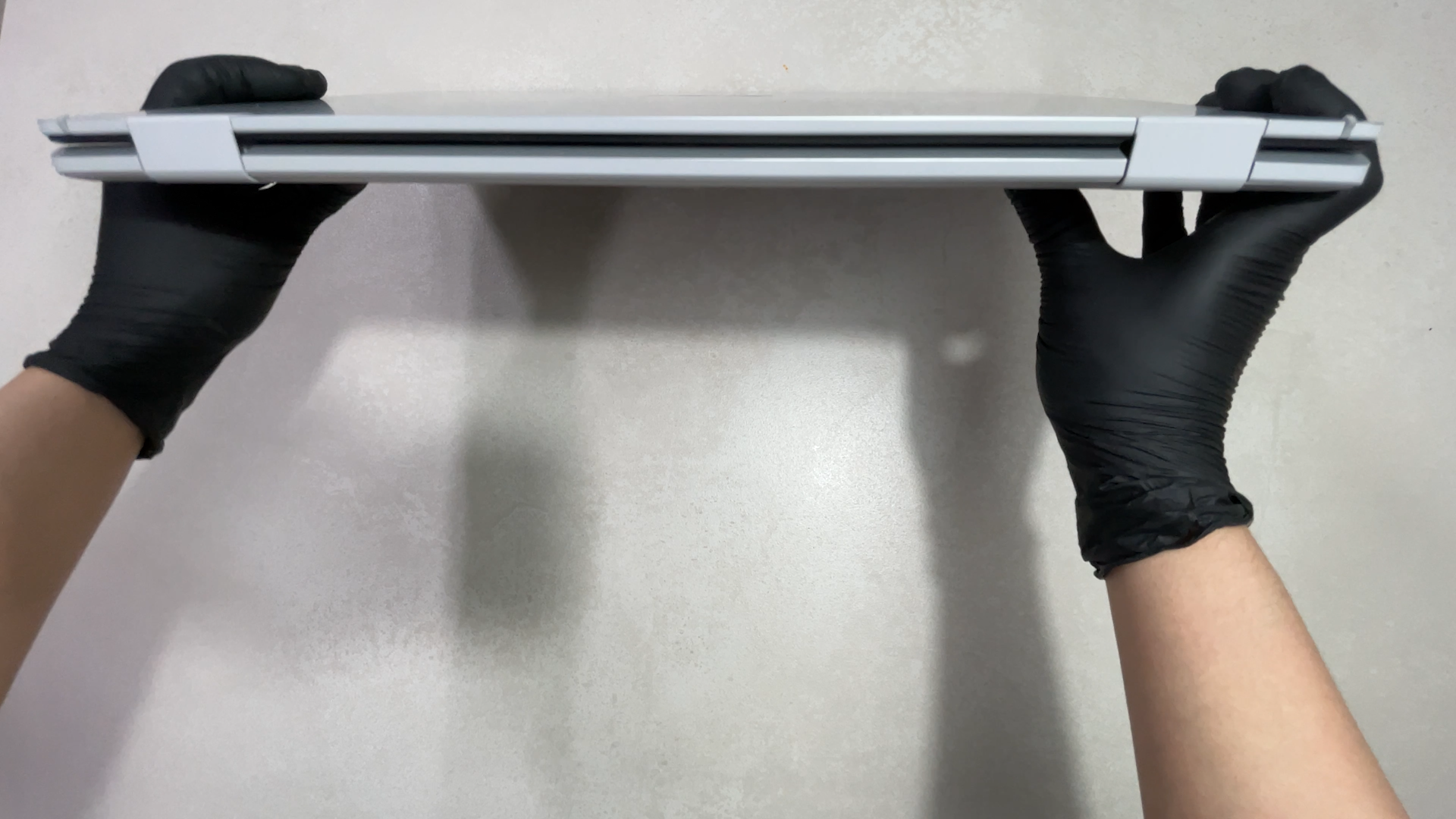 본체는 실버 색상의 노트북입니다. 13.3인치 노트북과 비교해보면 이 정도 크기라고 보면 될 것 같아요.