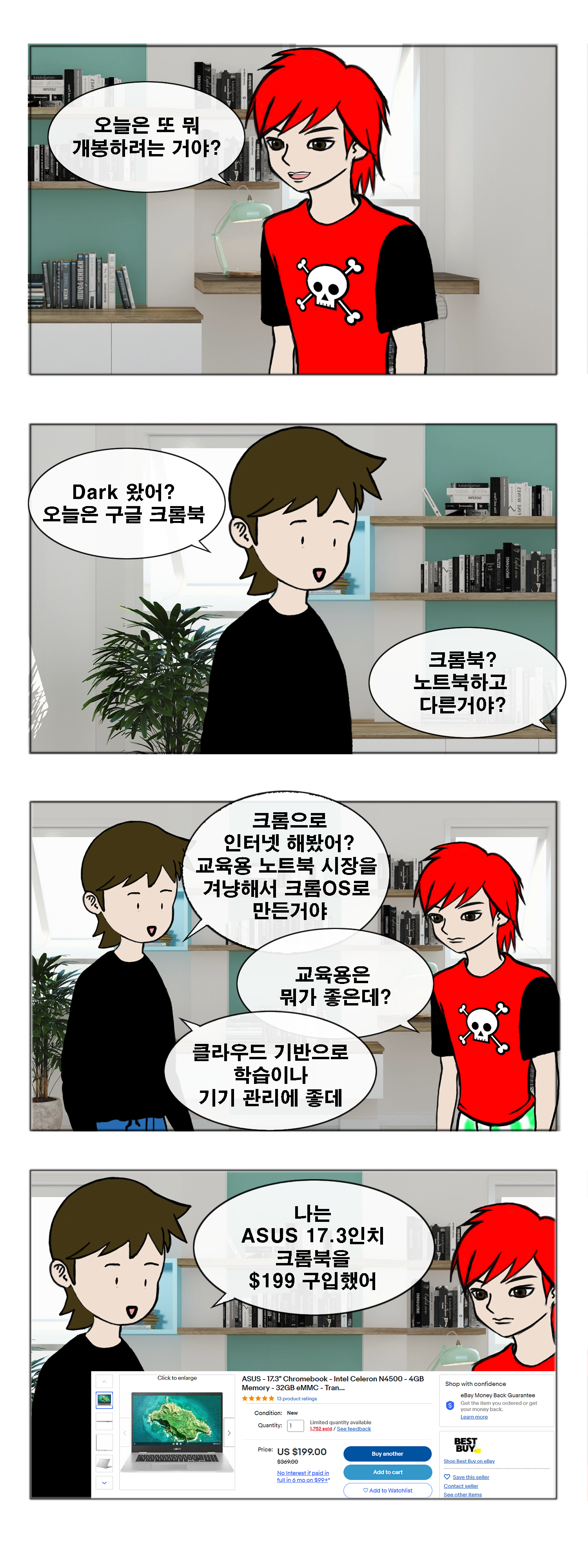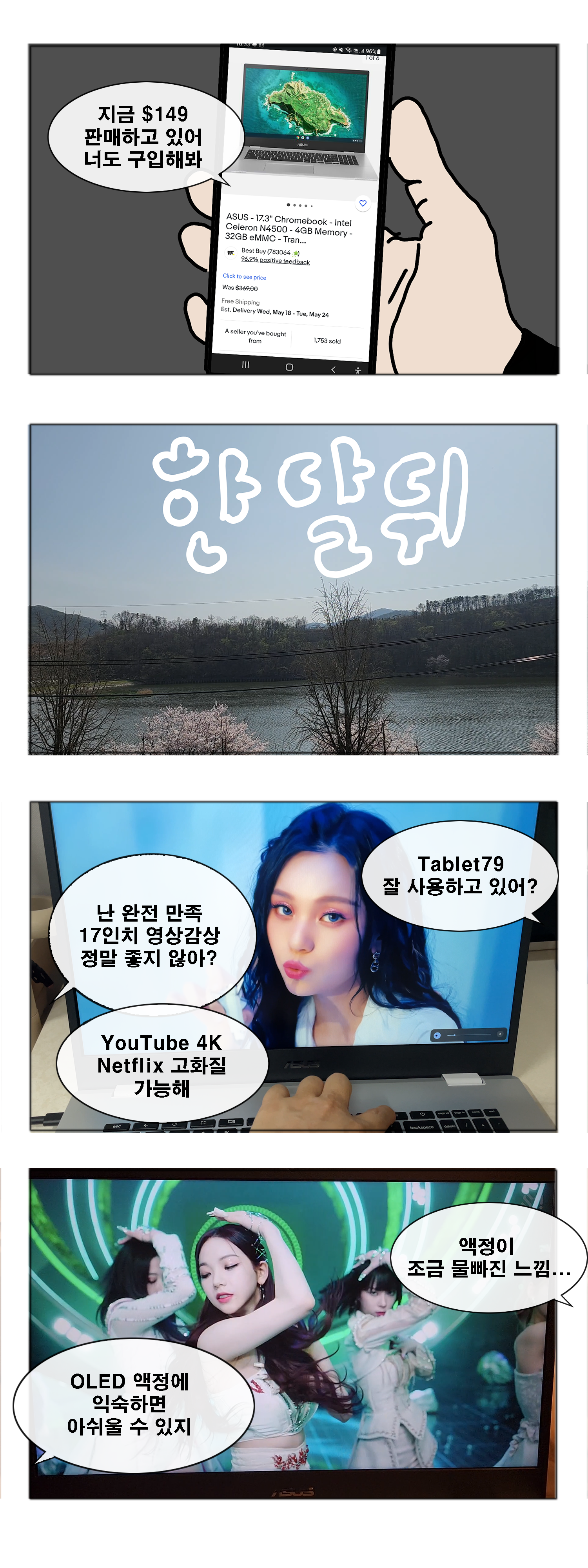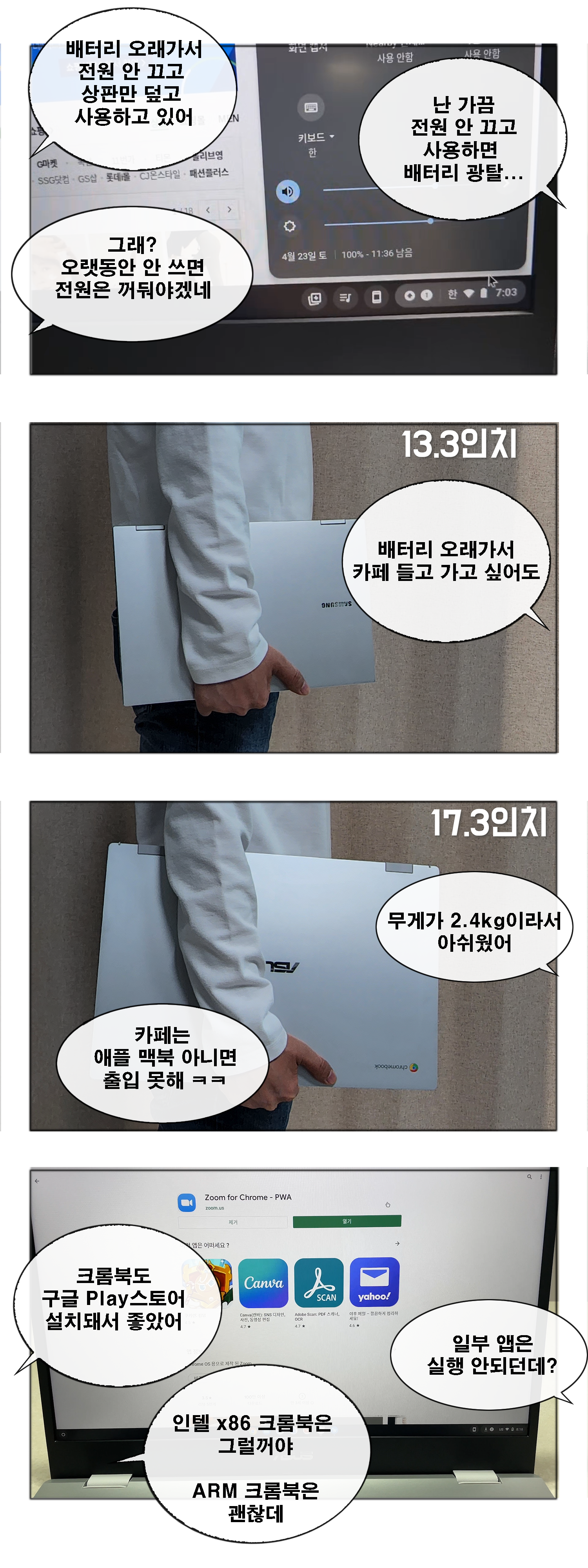 크롬북이 노트북 형태만 있지는 않고 ASUS CM3000(CM3) 같이 태블릿 형태의 제품도 있으니까 용도에 맞춰서 구입하면 될 것 같습니다.