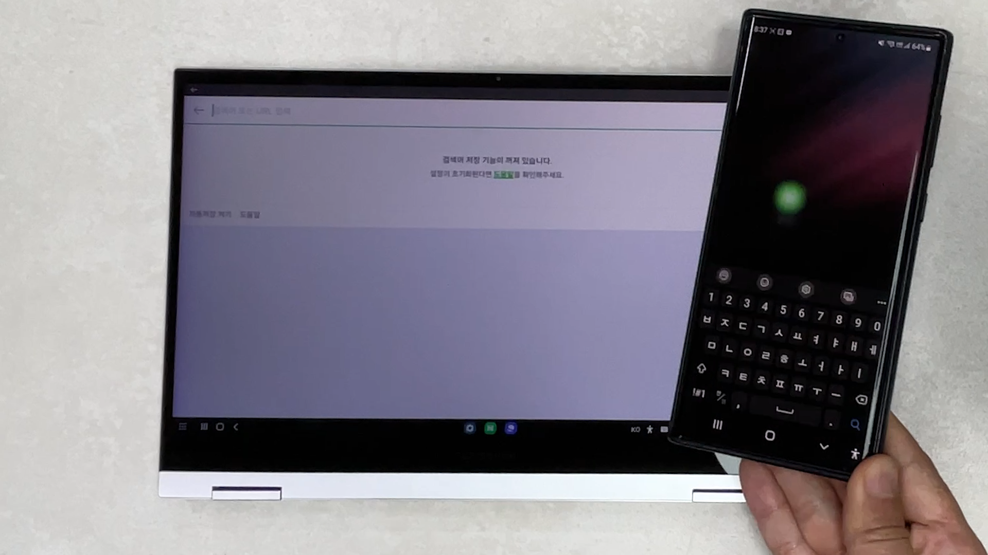 플립북 연결한 다음에 스마트폰의 가상 키보드가 안 보이면