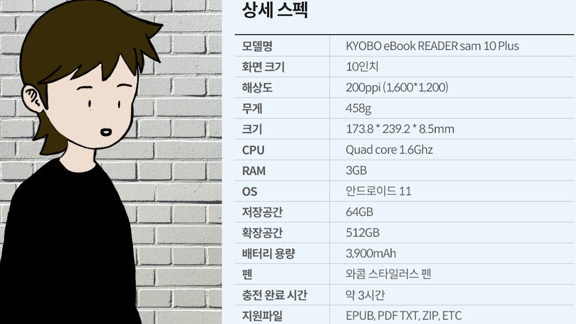 교보문고에서 10인치 크기의 대화면 전자책을 출시합니다.