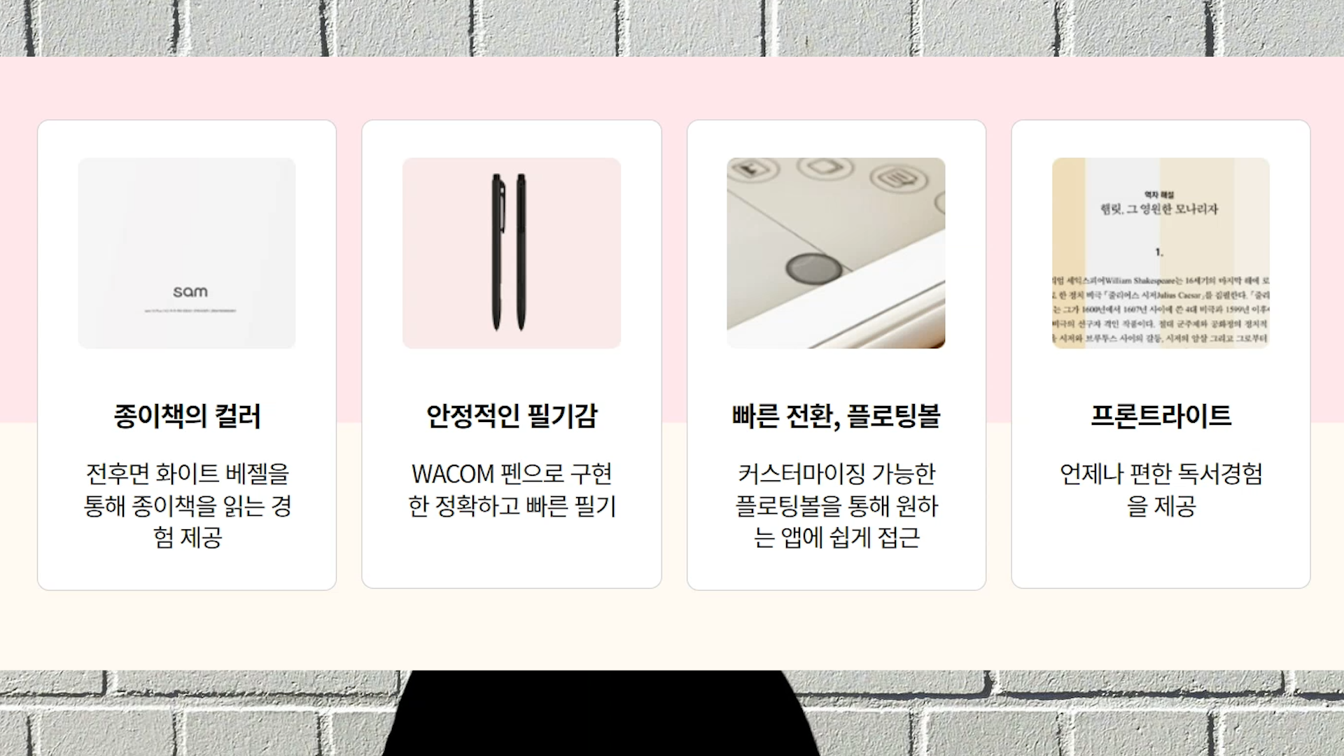 [더 넓어진 10인치 화면] · sam10+의 10인치 화면은 e-Reader의 한계를 넘어 태블릿과 같은 경험을 드립니다. · 독서, 필기 등 다양한 기능을 더 넓은 Eink 화면으로 편안하게 즐기세요. [주요 기능] ·