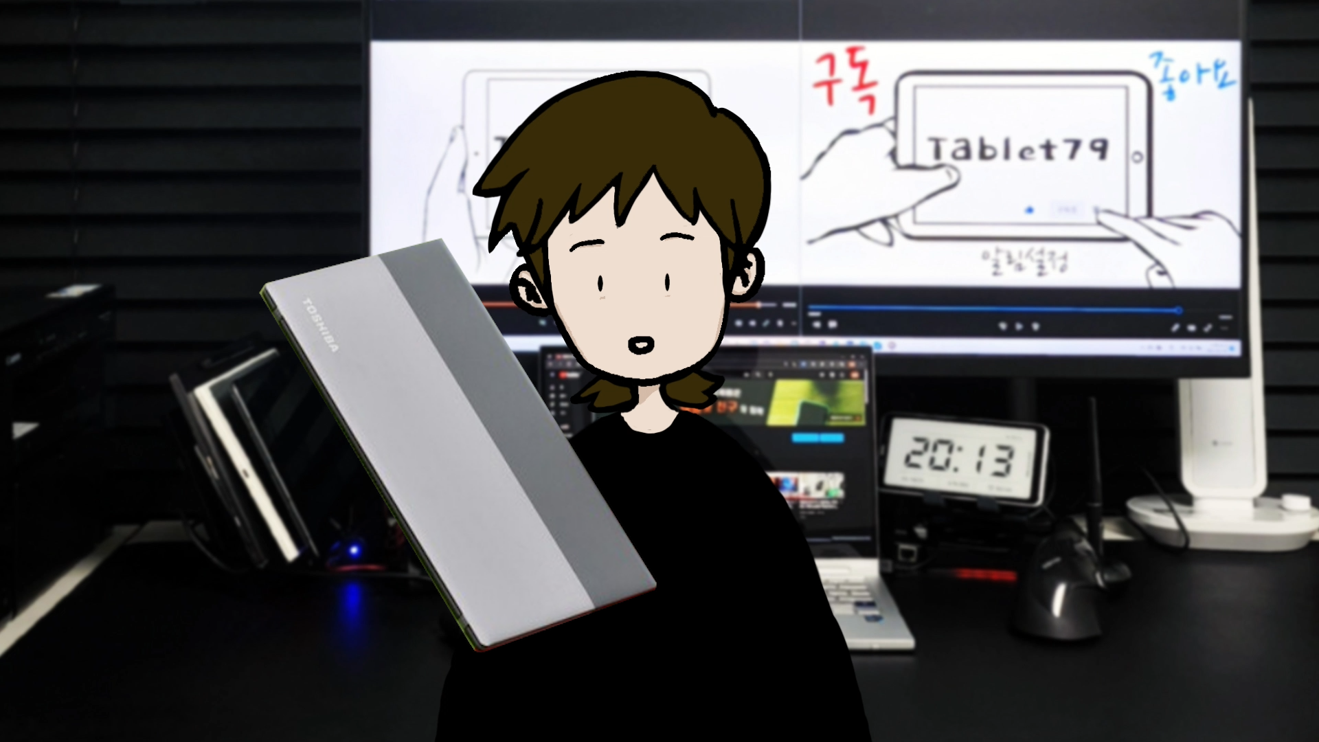 태블릿처럼 가까이서 보는 게 아니고 하단 키보드 옆에 있기 때문에 거리감이 있어서, 그렇게 자글자글하진 않아요