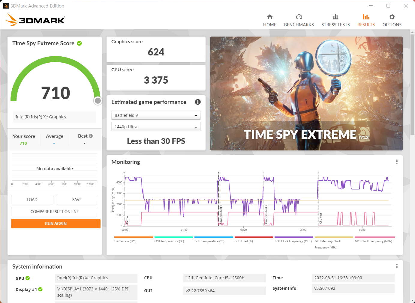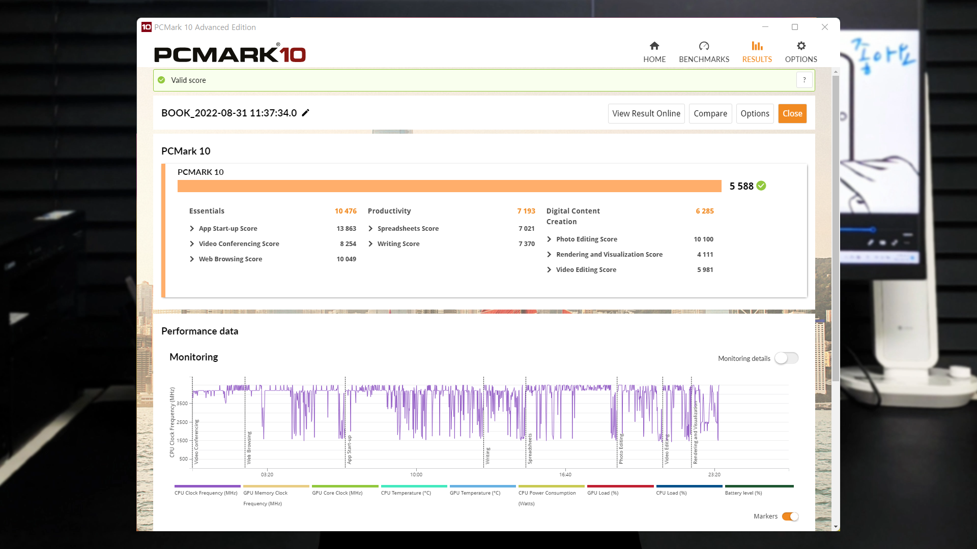 12세대 인텔 i5-12500H 프로세서에 PCMARK 10 점수는 5588점이 나왔습니다.