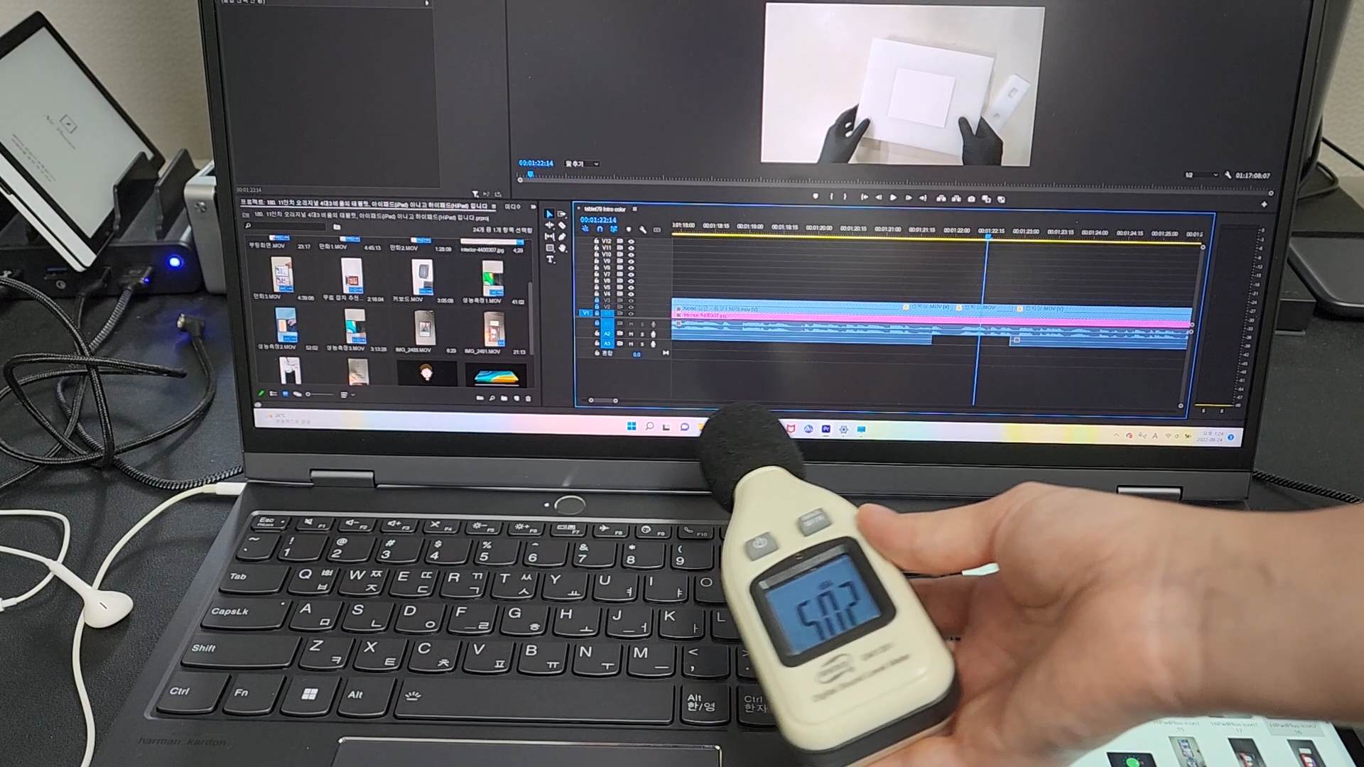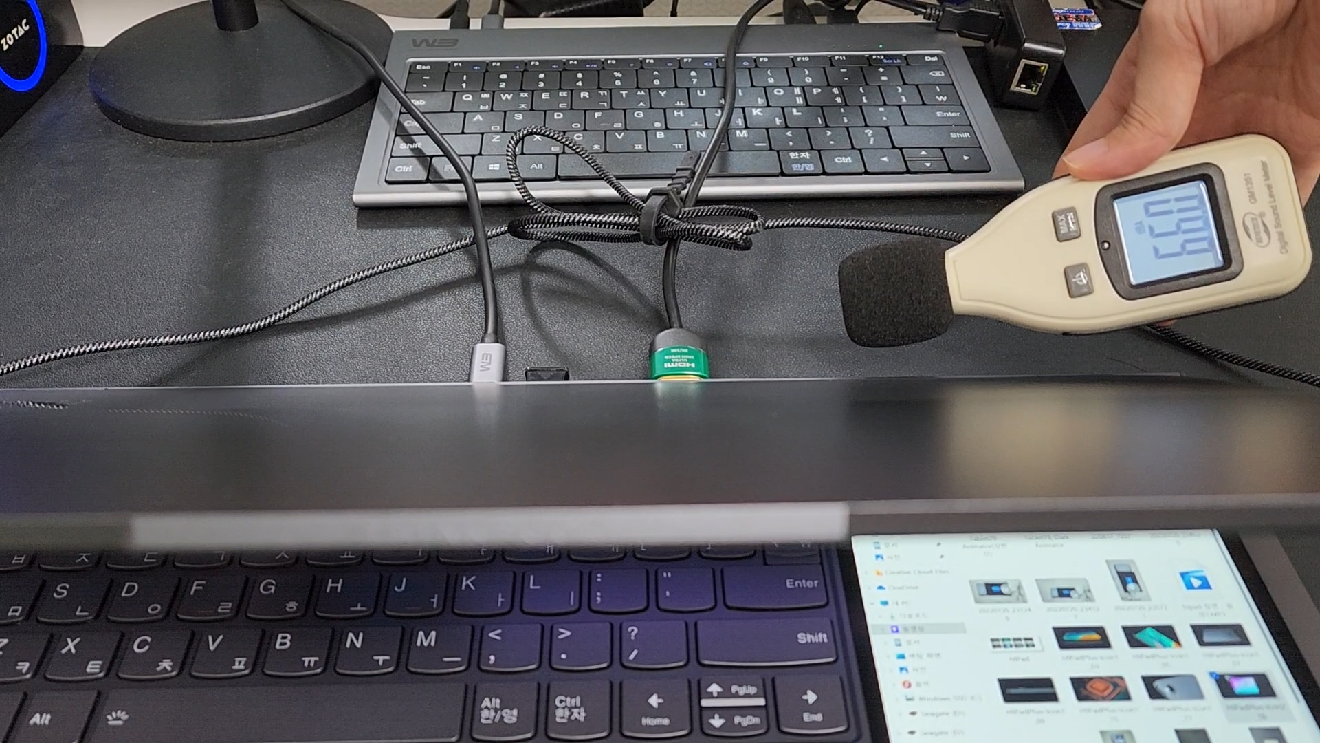 제품 소음은 동영상 편집할 때, 앞쪽은 50dB 정도 나왔고요