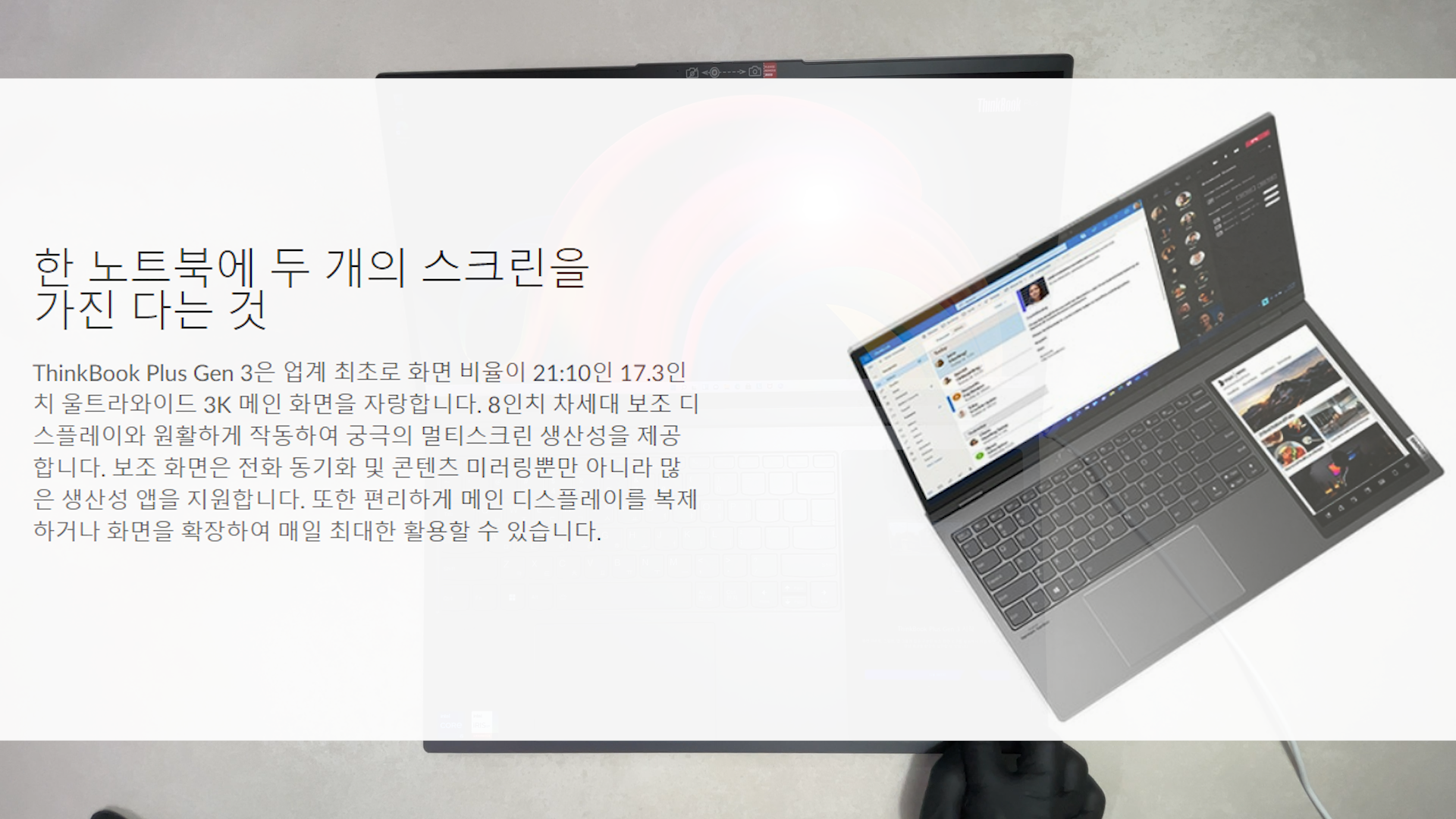 레노버 ThinkBook Plus Gen3 제품에 매력을 느낀 부분도, 8인치 액정 보다는 21:10 비율이 끌렸다고 말하고 싶네요.