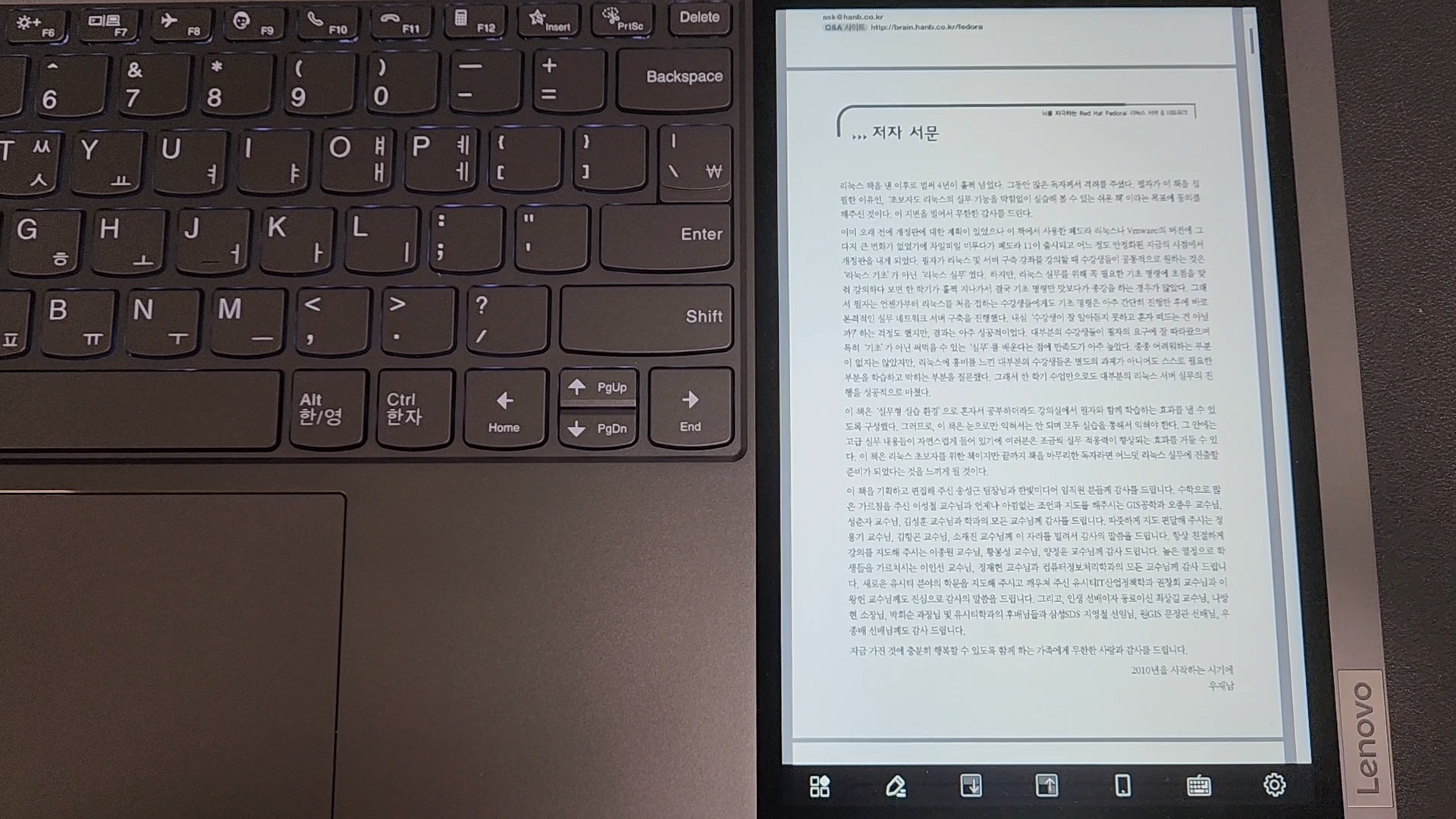 이렇게 책을 띄어 놓고 보기에는 PDF를 볼때는 조금 작은 감이 있고, 선명하게 보이진 않아서 조금 아쉽습니다.
